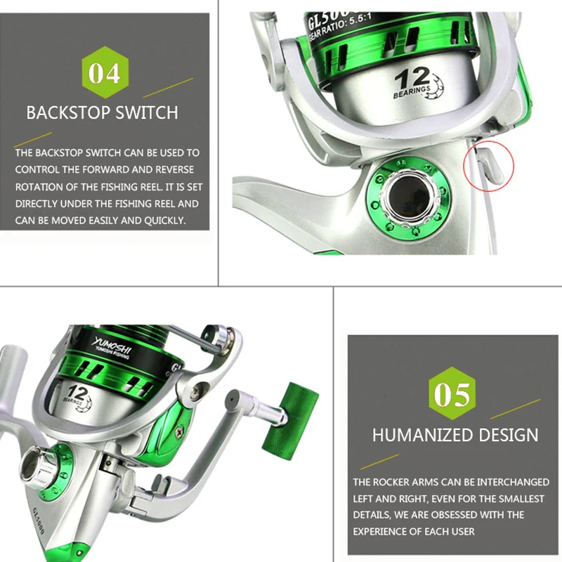 YUMOSHI новые спиннинговые Катушки, 12-осевая металлическая головка...