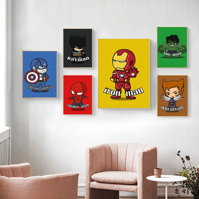 Мультяшный супергерой Marvel Мстители Холст Картина Человек-паук Железный человек Капитан Америка плакат печать для детской комнаты декор