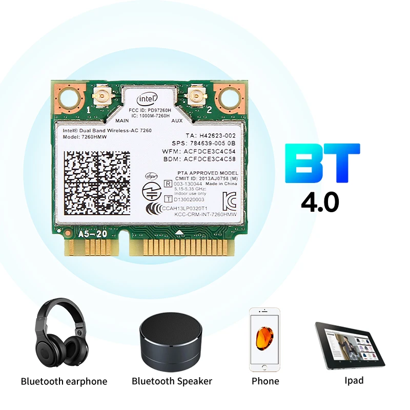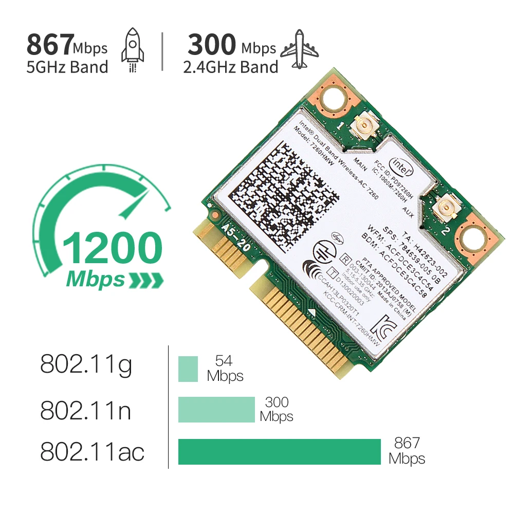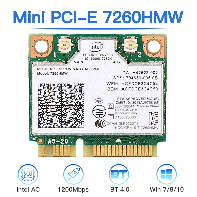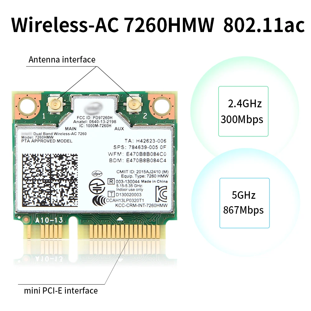 Intel 7260HMW Mini PCI-E Wi-Fi сетевая карта, Двухдиапазонная 2,4G5 ГГц Bluetooth-Совместимость 4,0 802.11acabg WiFi адаптер для рабочего стола