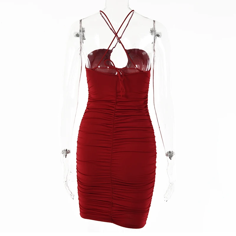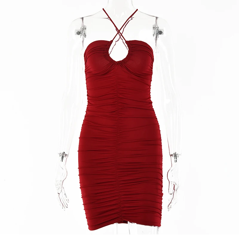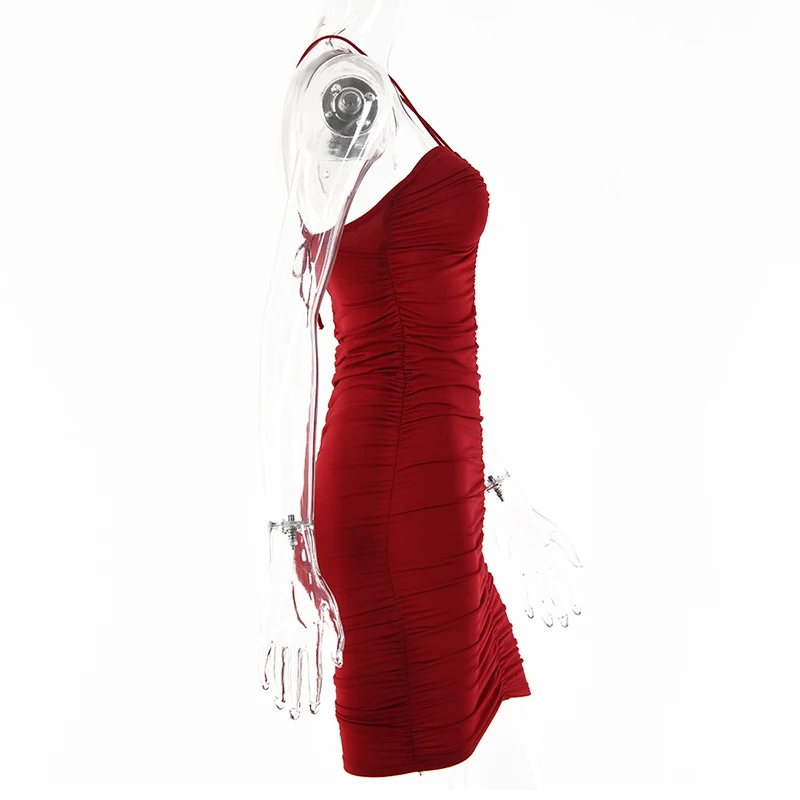 Эластичные летние платья с рюшами и лямкой на шее для женщин, пикантные облегающие мини-платья с открытой спиной, обтягивающие Клубные Вечерние Повседневные наряды, одежда 2021