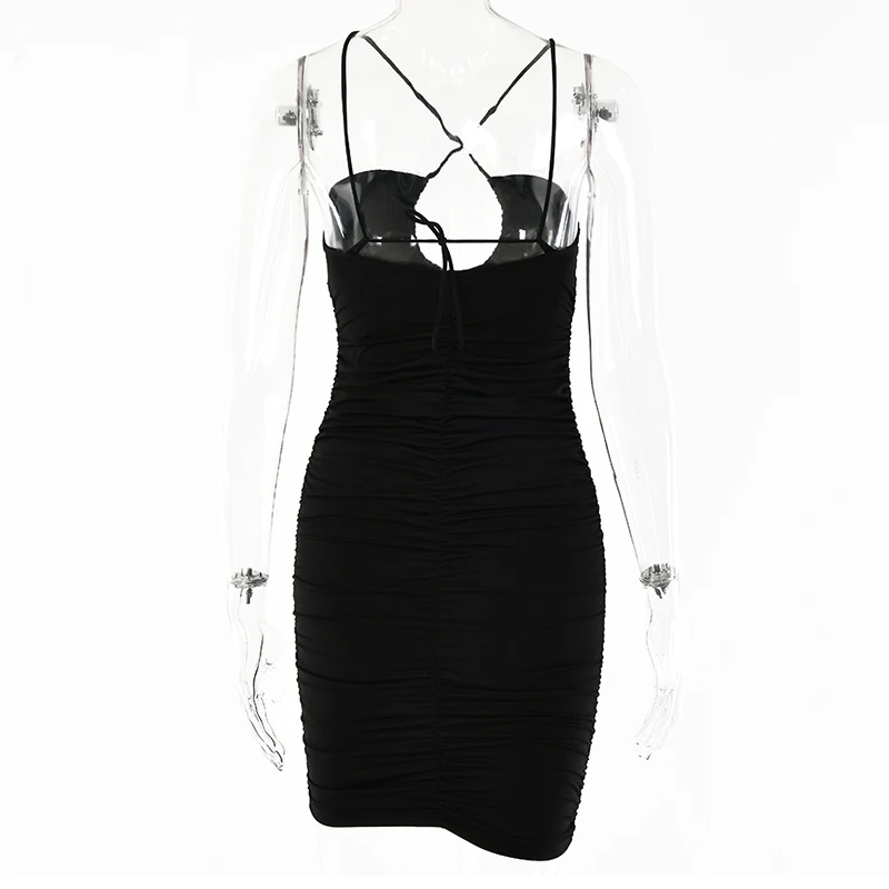 Летняя женская плиссированная полая облегающее мини платье с лямкой...