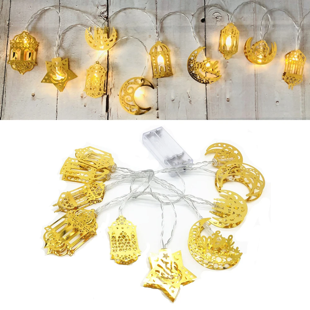 10 Огни Рамадана украшение Луна Звезда светодиодные гирлянды ИД Муб...