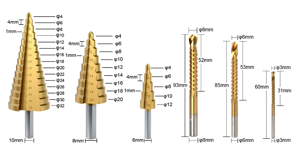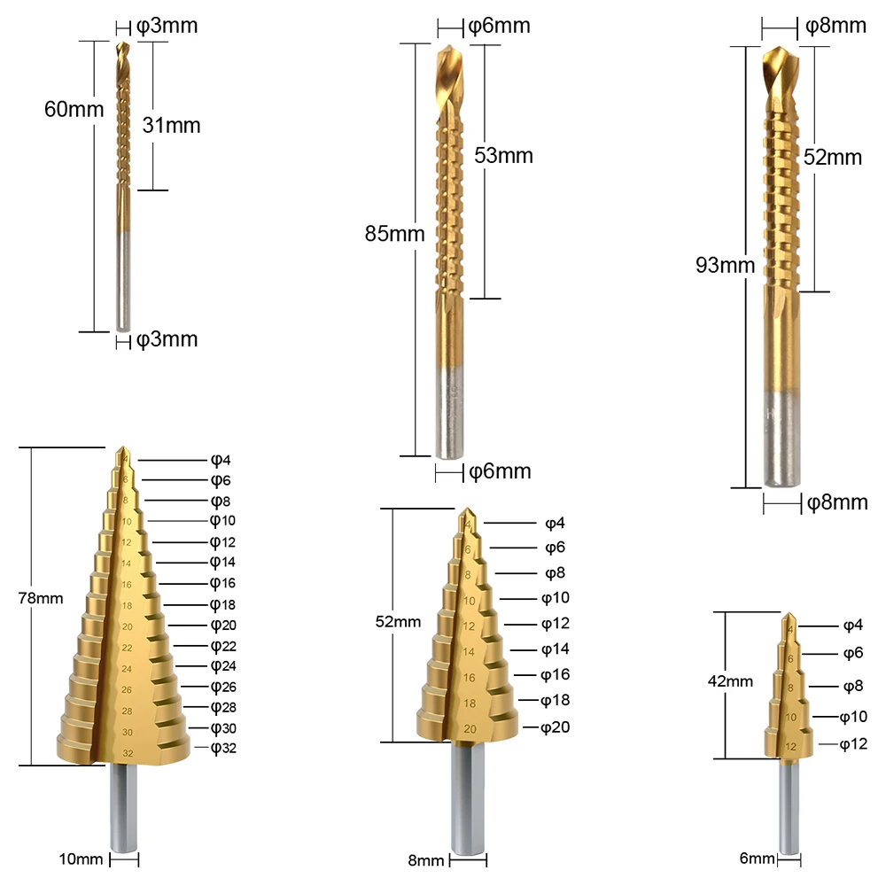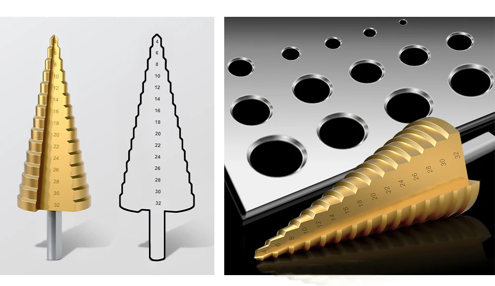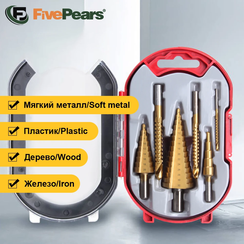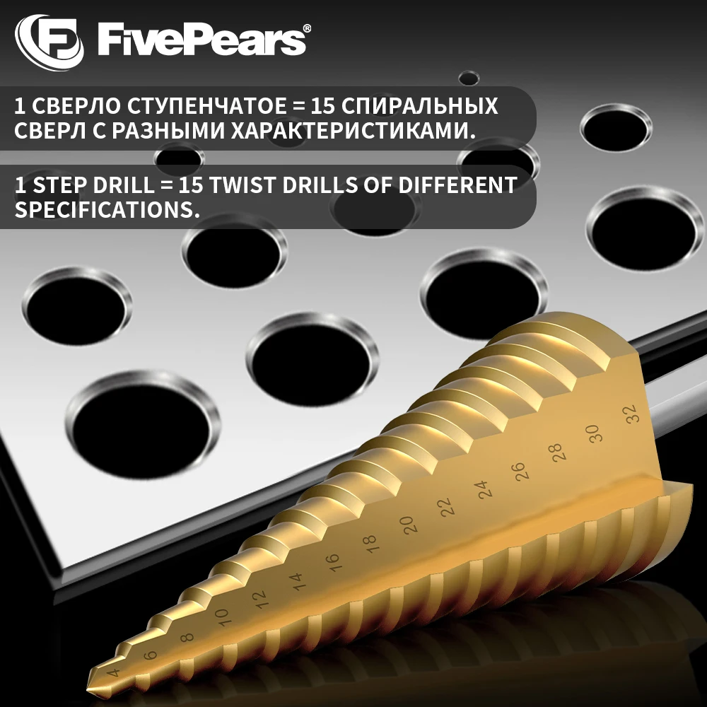FivePears сверло ступенчатое по металлуМатериал: быстрорежущая стальДля мягкого металлатонкого железадеревапластикасверла по металлу ступенчатое сверло коническое