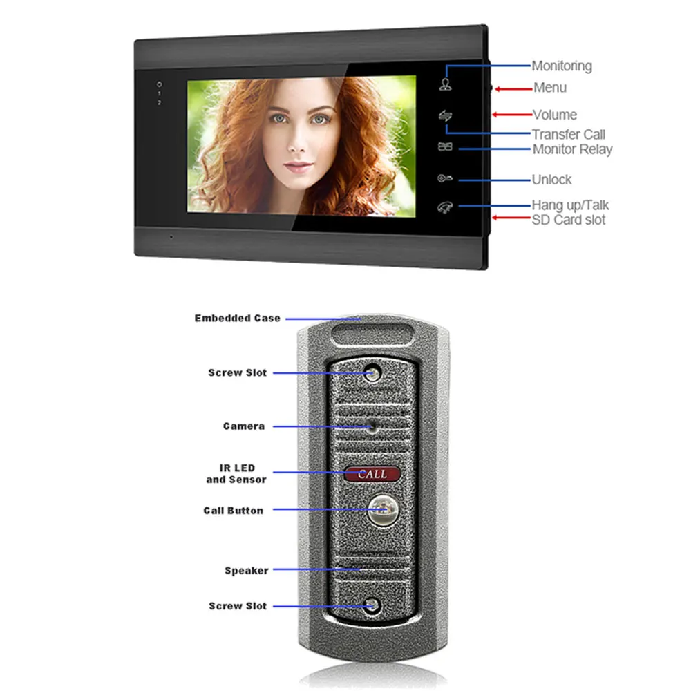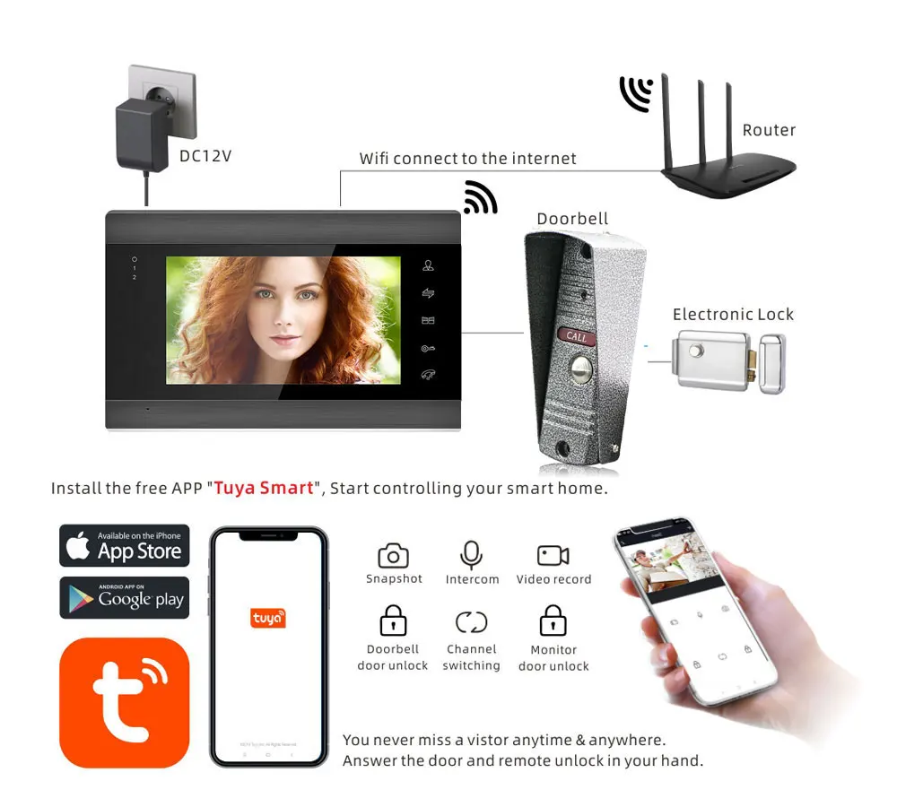 Tuya app 7 дюймов беспроводной WiFi смарт IP видео домофон с 1x720P проводной дверной звонок камера, поддержка дистанционного разблокировки