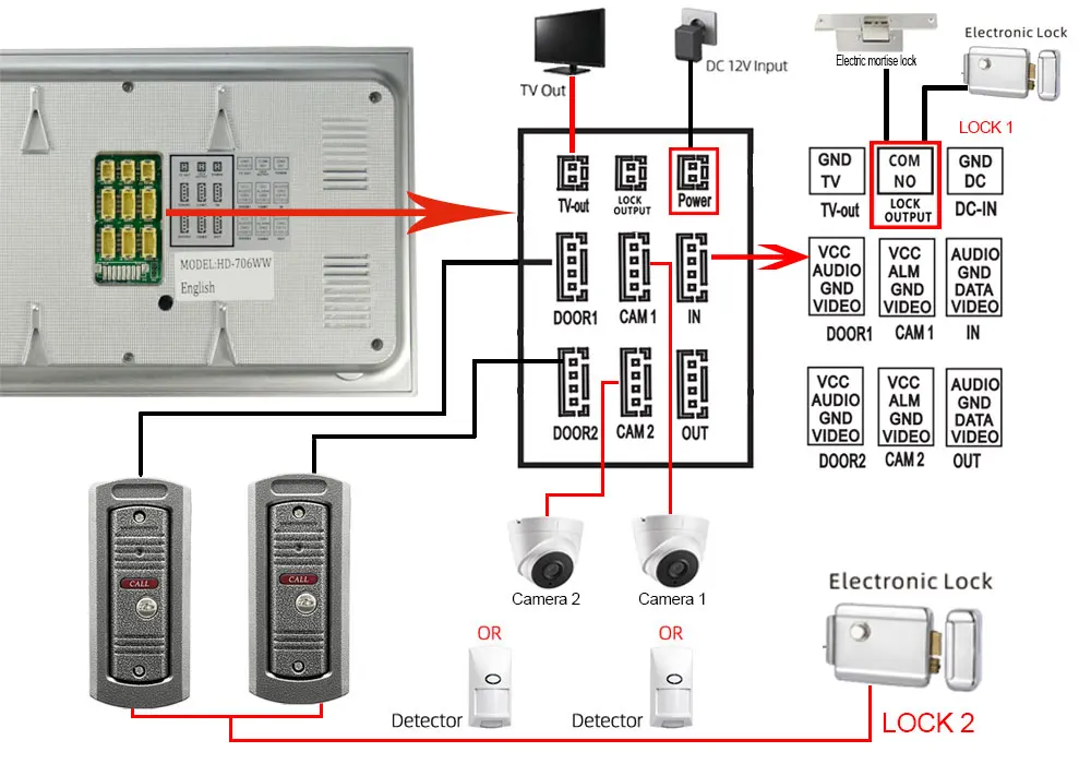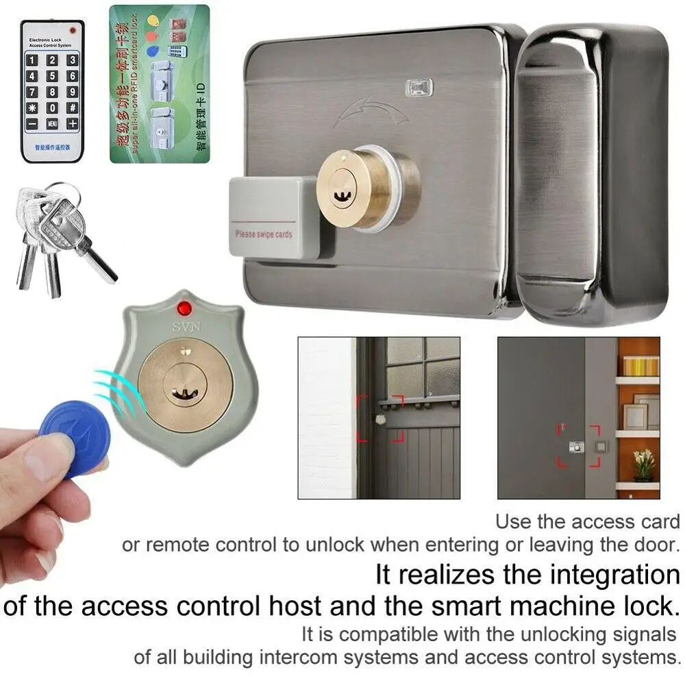 Этот набор поддерживает подключение 2 электронных замка в основном, после подключения электронного замка, вы можете использовать приложение или монитор, чтобы открыть дверь. Когда вы находитесь наверху, в саду или даже если вы не дома, вы можете дистанционно разблокировать дверь электрического замка для своих друзей и семьи через бесплатное приложение