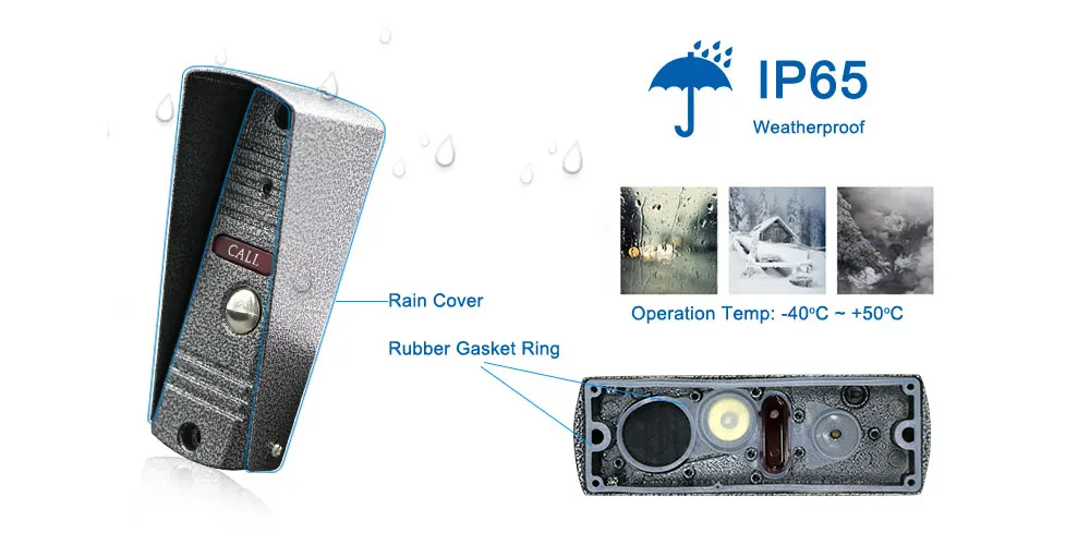 Дверной звонок изготовлен из антикоррозийной панели из алюминиевого сплава, поэтому он имеет защиту от дождя, пыли и вандализма IP65, более того, встроенный ИК-фильтр и ИК-светодиоды для лучшего ночного видения