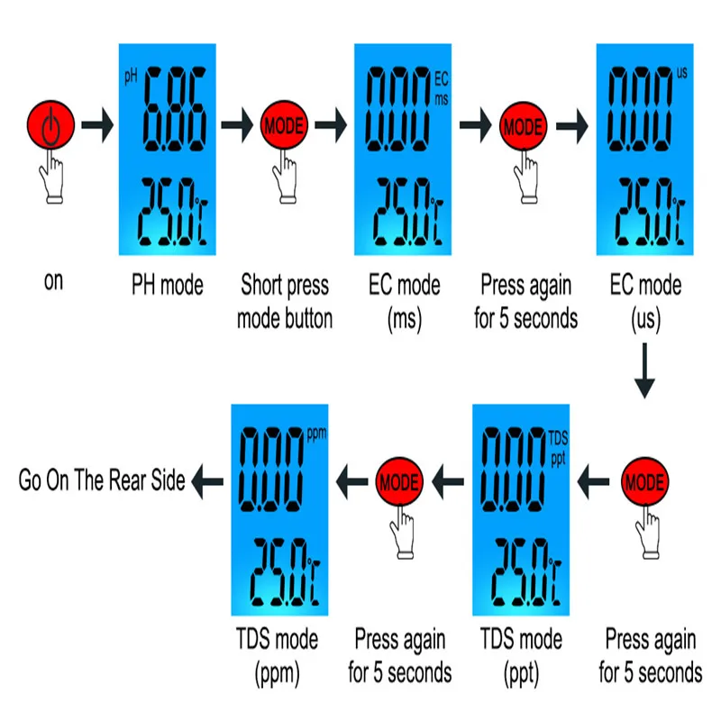 4 в 1 TDS/PH/EC/измеритель температуры с подсветкой