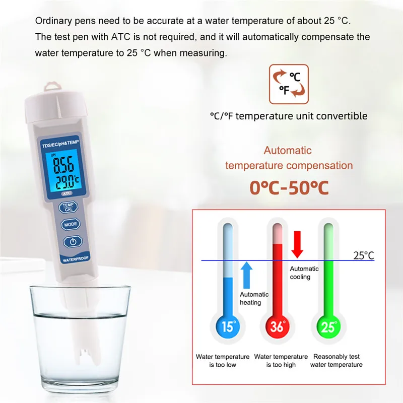 Профессиональный PH/TDS/EC/измеритель температуры, детектор чистоты воды, цифровой тестер 4 в 1, монитор для питьевой воды, аквариума