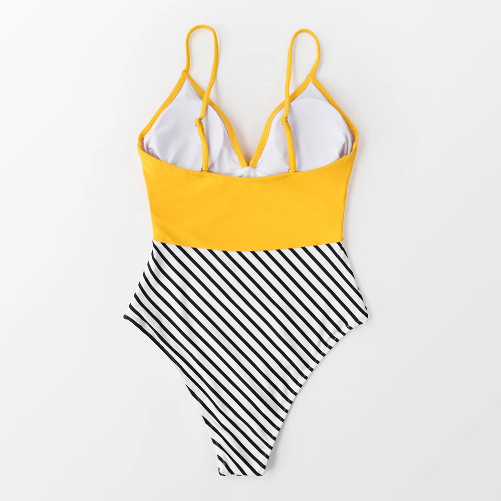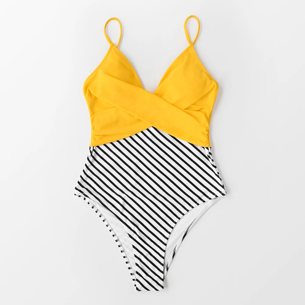 CUPSHE, сексуальный желтый цельный купальник в полоску с v-образным...