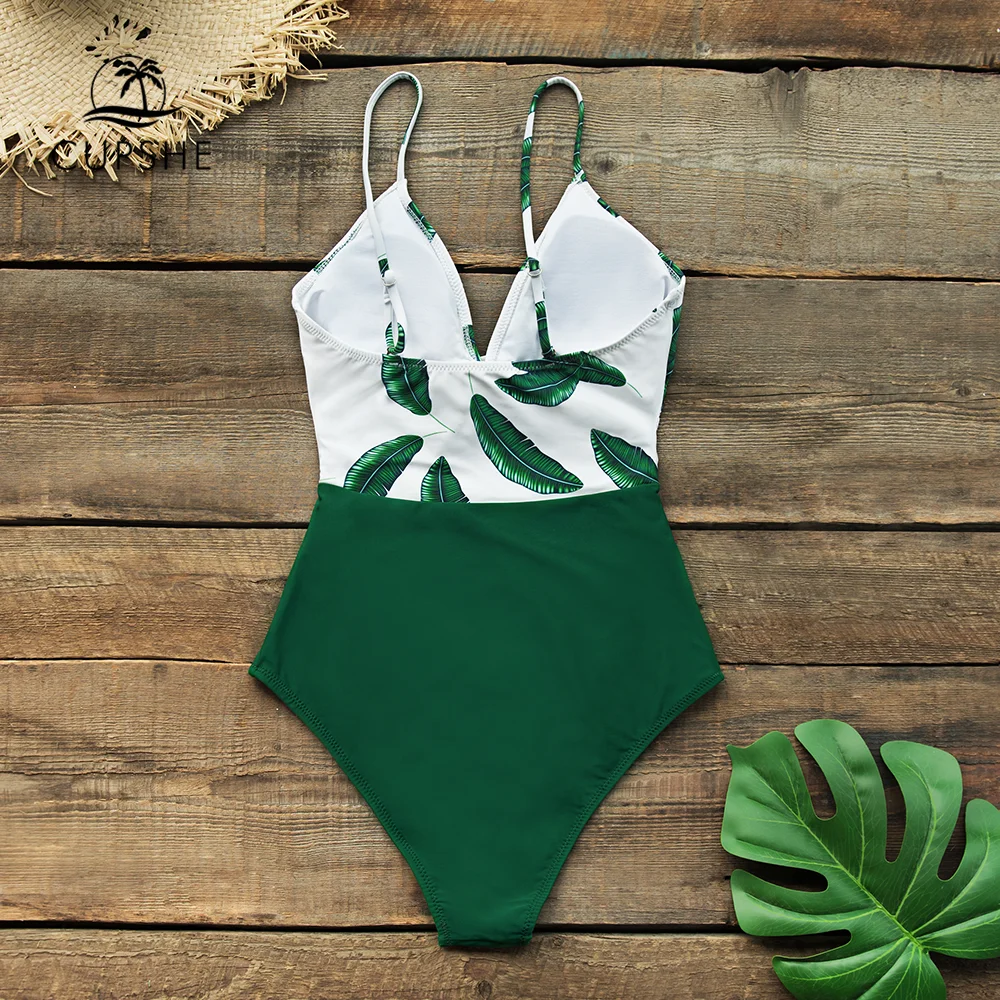 Слитный купальник CUPSHE с пышным принтом листьев, женское монокини...