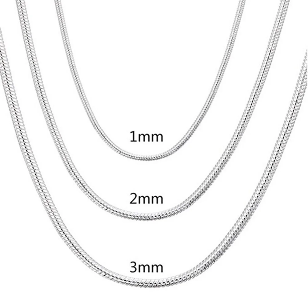 Ожерелье серебряного цвета со змеиным плетением 1 мм2 мм3 мм для мужчин и женщин, модная свадебная бижутерия для помолвки, 16-30 дюймов, 925