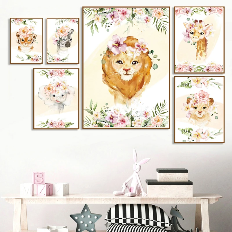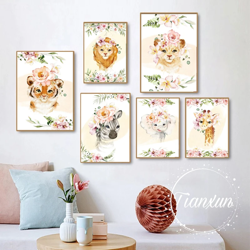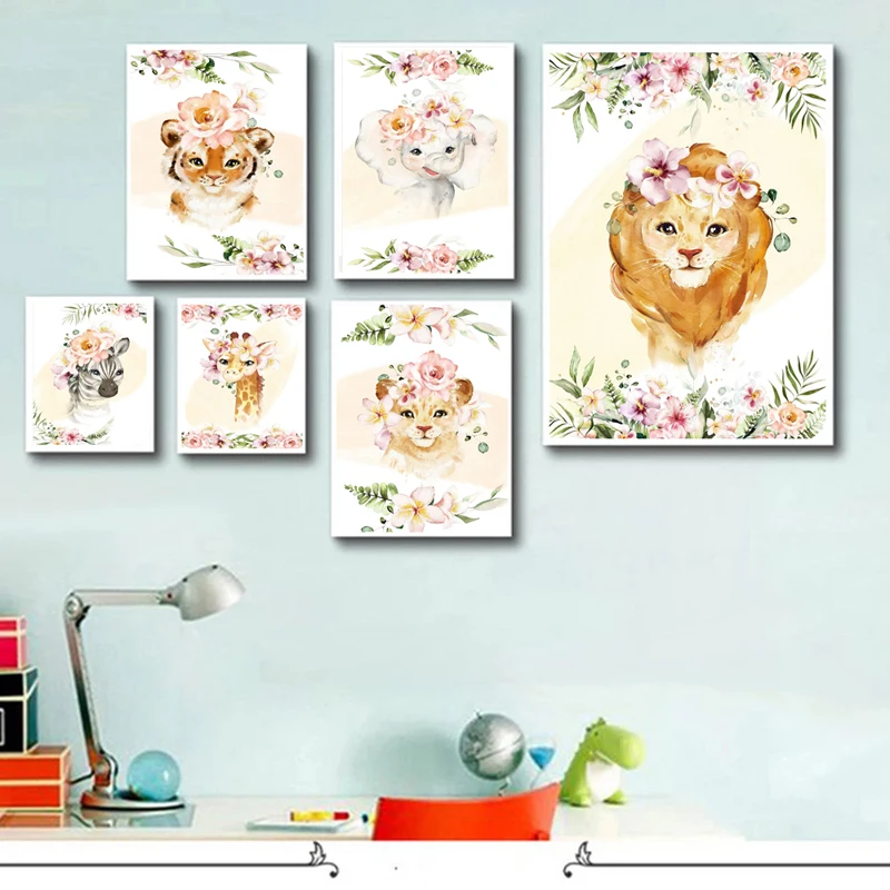 Милые Мультяшные Животные декоративные картины лев ребенок слон Дет...