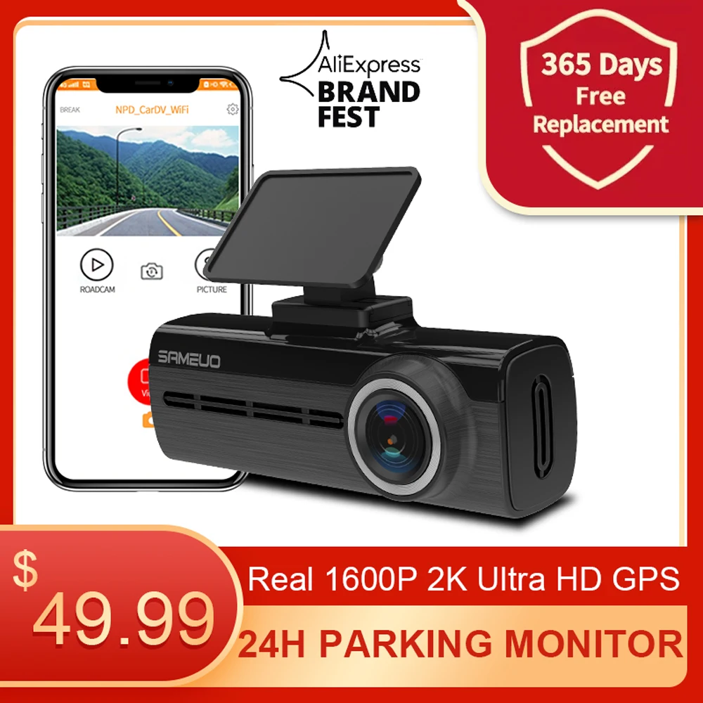 Sameuo Dash Cam U750 Dash cam спереди и сзади, Wi-Fi, Видеорегистраторы для автомобилей 1600P Dash Камера HD Ночное видение видео рекордер 24 часа в сутки Parcking монитор
