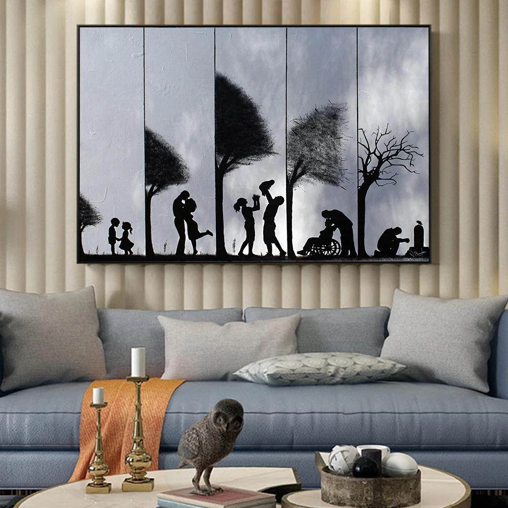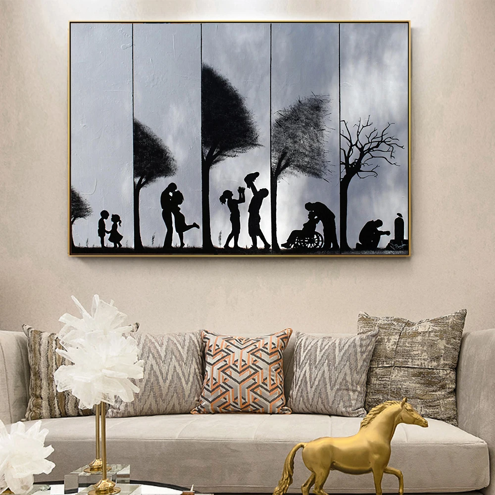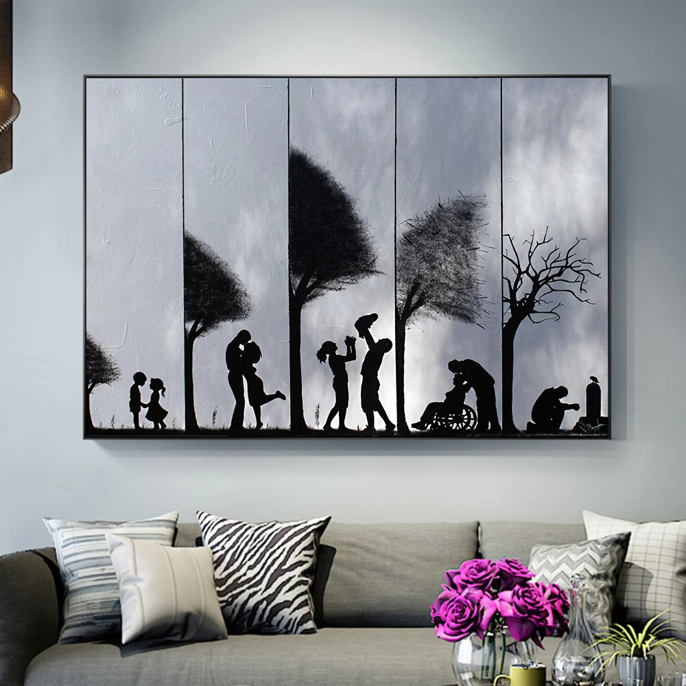 Черно-белый эскиз, бессрочная картина со временем на холсте, абстрактные постеры и принты, настенные картины для декора гостиной