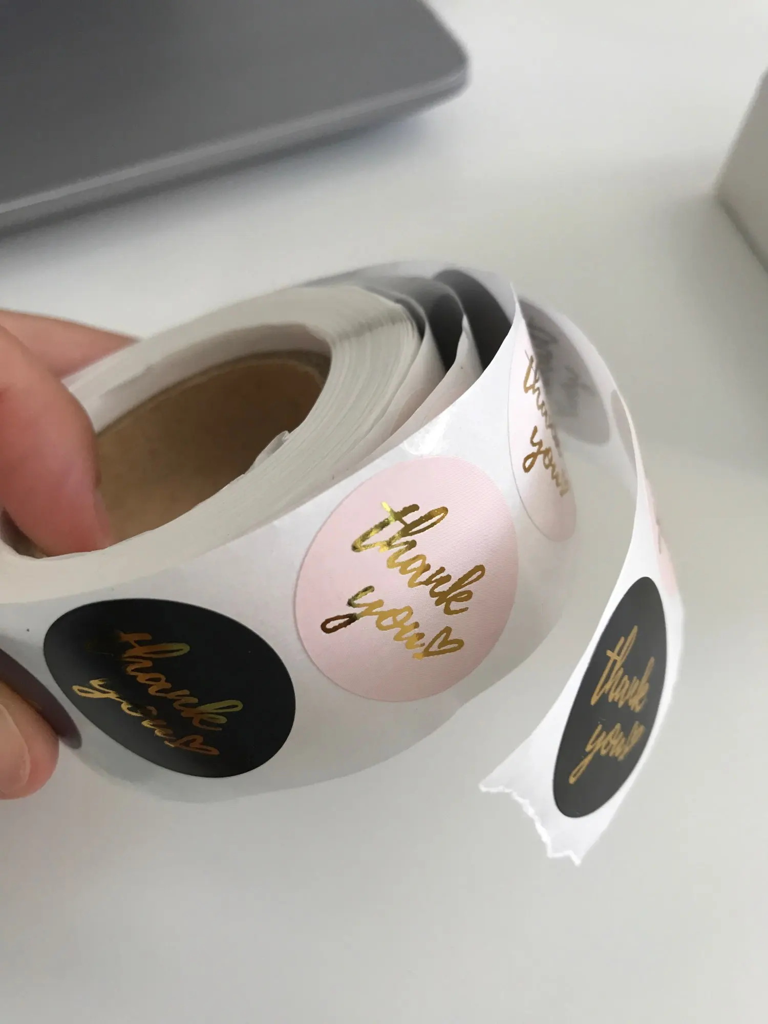 Спасибо наклейки этикетки для печати в переменного тока, 50-500 шт. золотой фольги декоративный бумажный стикер для украшения ручной работы, свадебный подарок этикетки канцелярские товары 4 Цвета