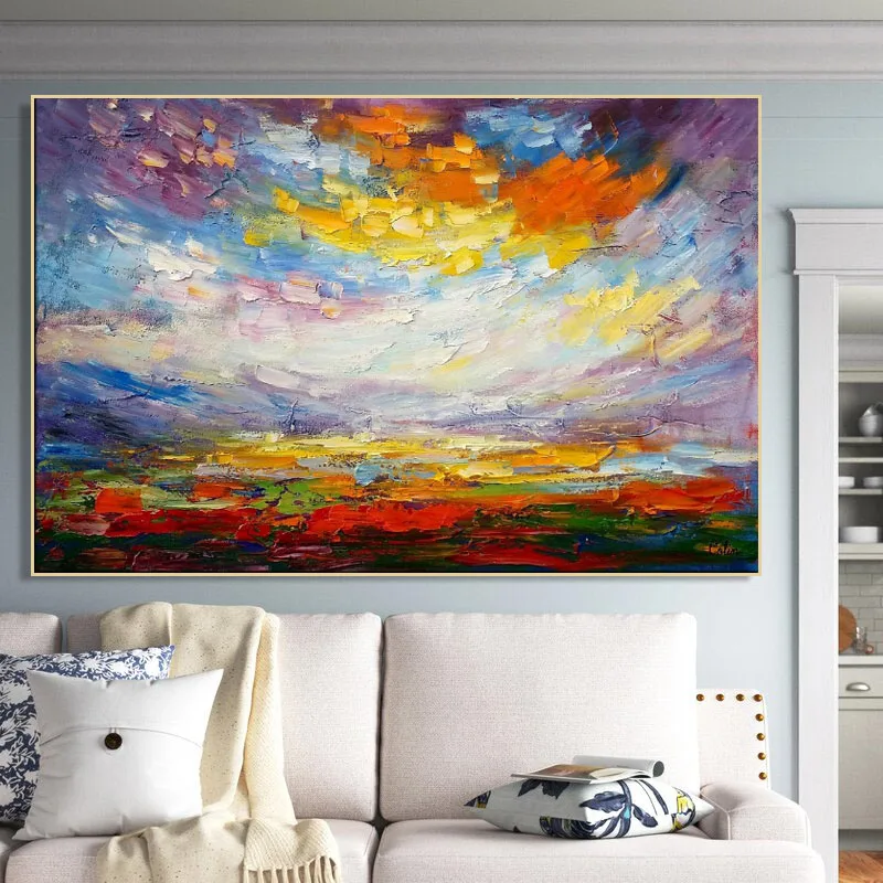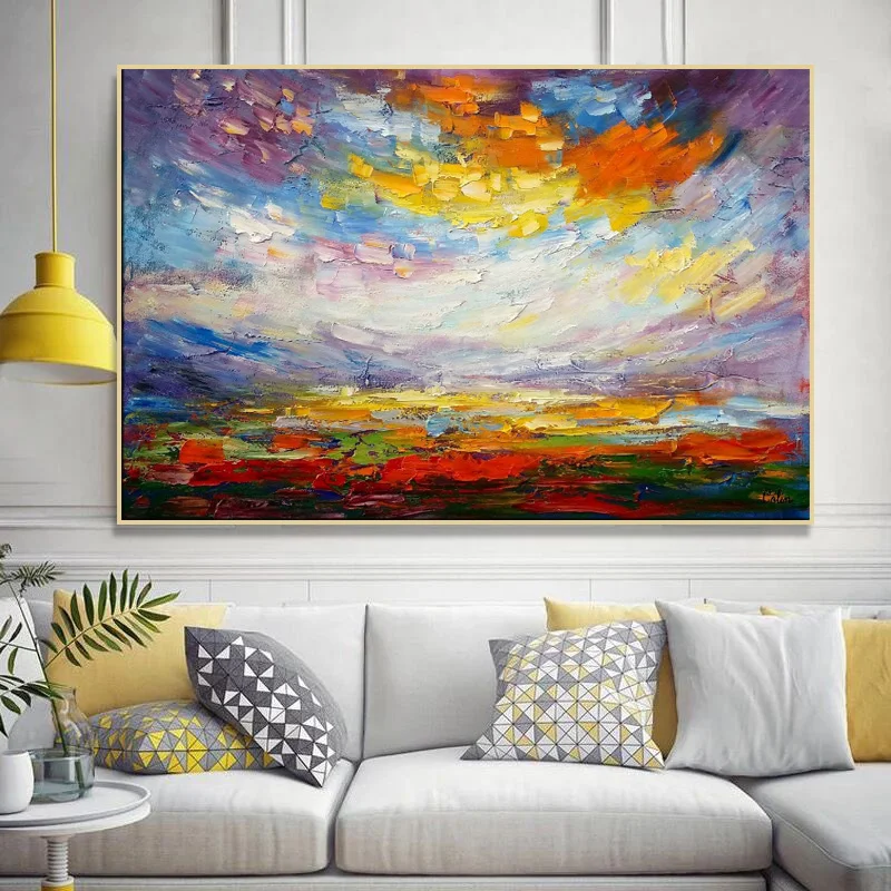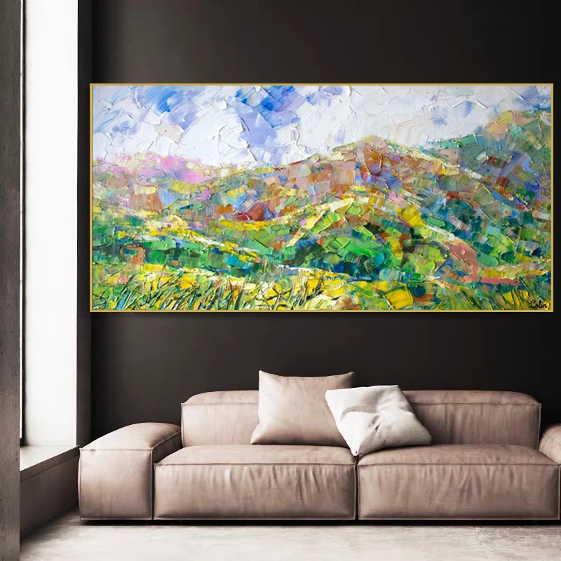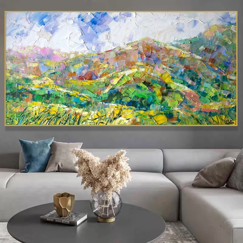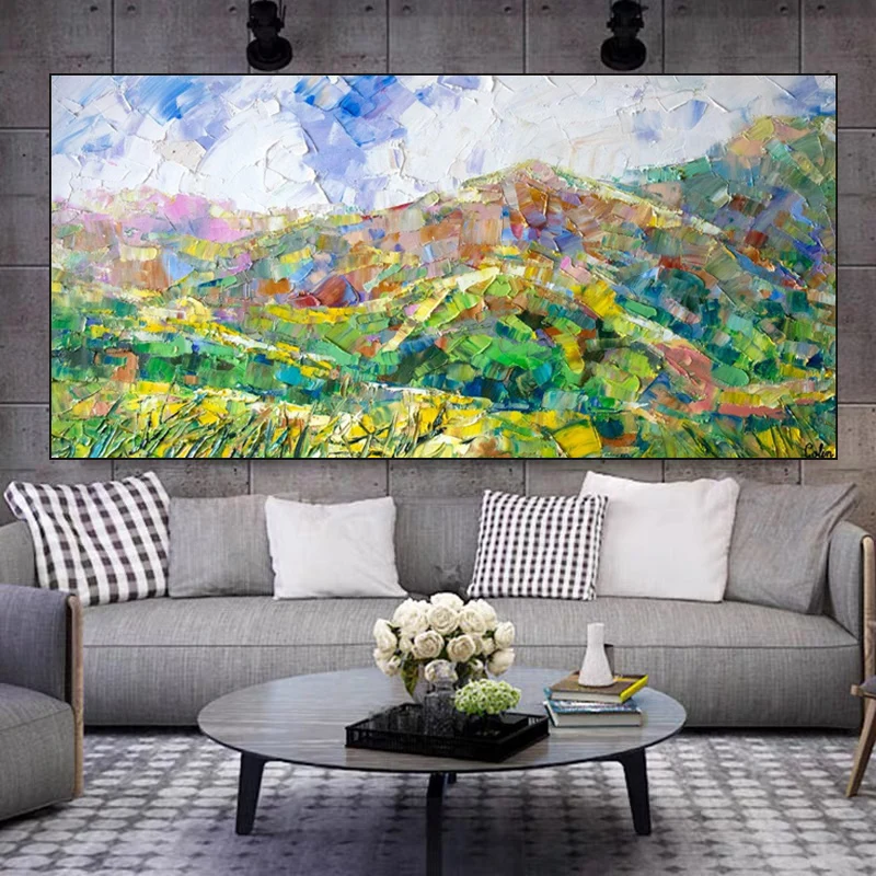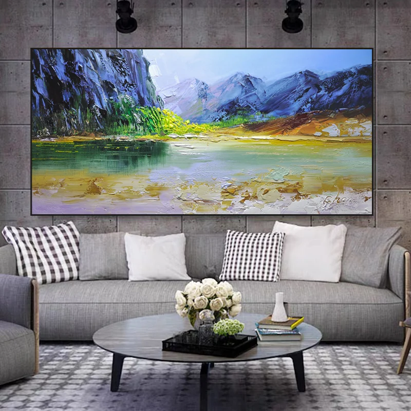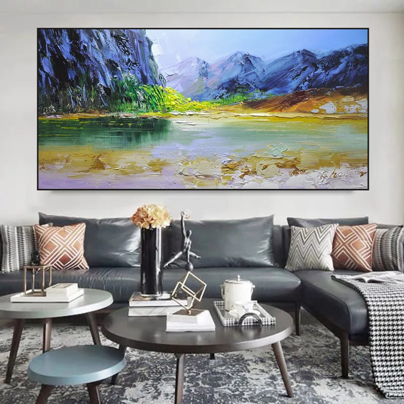 Прямая поставка, картина с изображением озера и гор, ручная роспись, абстрактная масляная живопись на холсте, настенное искусство для гостиной, домашний декор, без рамки