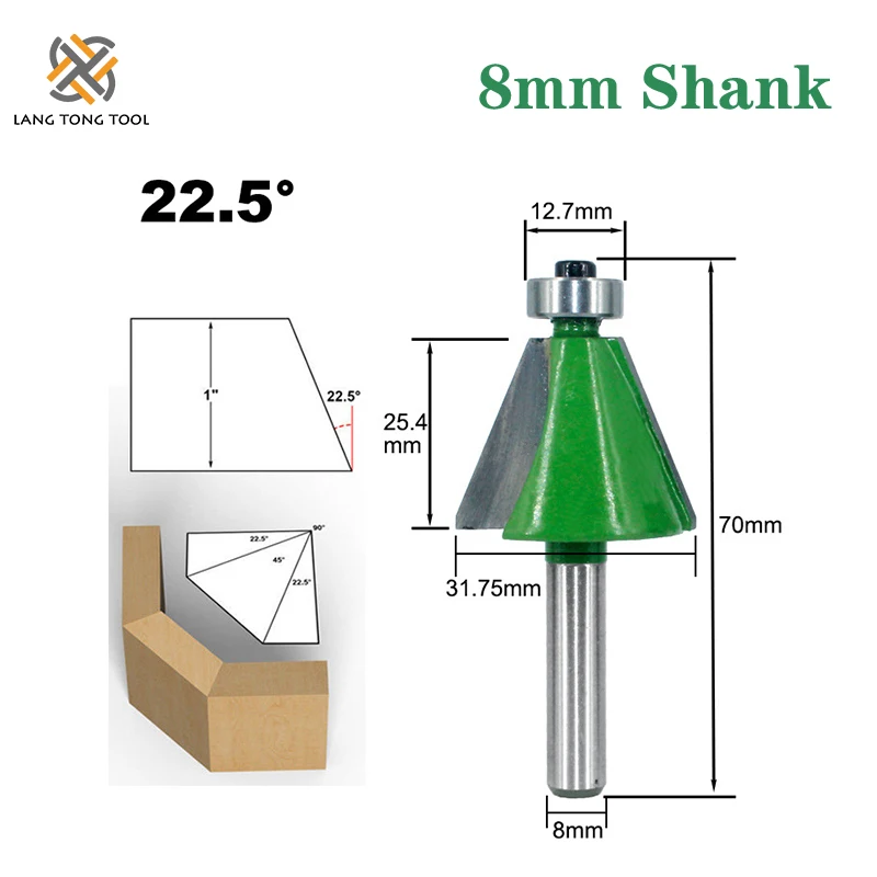 LANG TONG инструмент 1 шт. 8 мм хвостовик Фаски Фреза 22,5 градусов Фреза для деревообрабатывающего станка LT072
