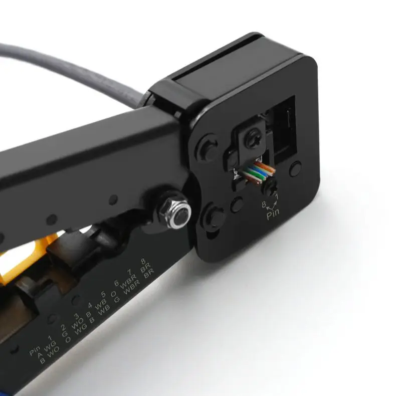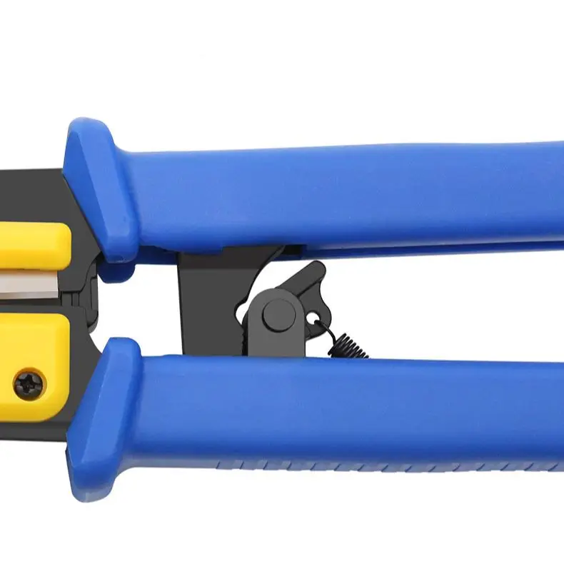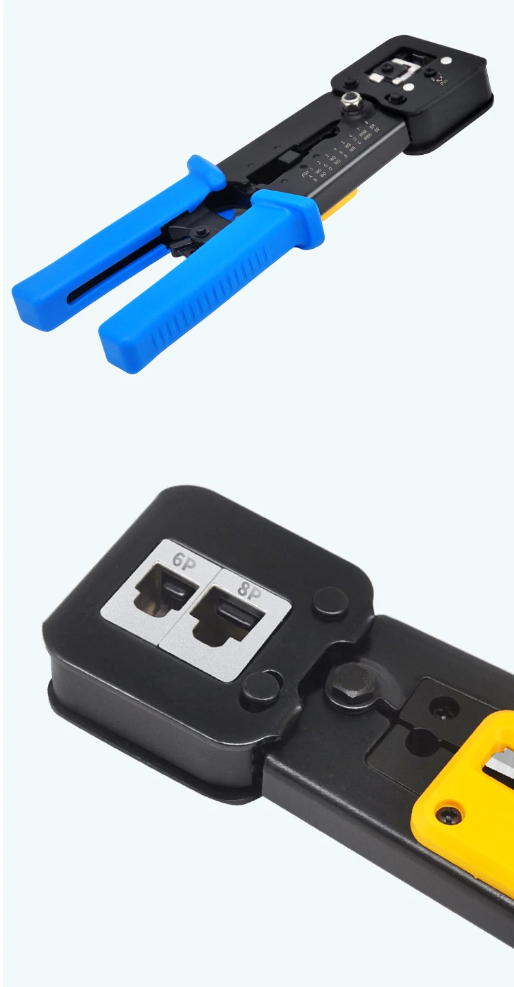 Этот тип обжимных плоскогубцев-это специальные обжимные плоскогубцы с прозрачной головкой, которые могут автоматически разрезать через излишки прозрачной головки с сквозным отверстием. Кристальная головка с сквозным отверстием используется для изготовления сетевого кабеля, а скорость проводимости составляет 100%. И эти обжимные плоскогубцы также могут нажимать на обычную кристальную головку RJ45, это Экономичные обжимные плоскогубцы высокого давления!