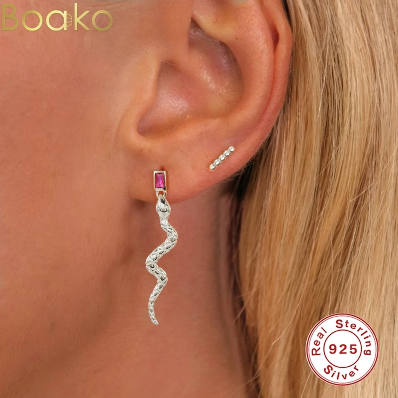 BOAKO 100% 925 пробы серебро 6 цветов Циркон CZ Змея серьги-гвоздики с животными длинные пирсинг Pendientes 2021 тренд ювелирные изделия