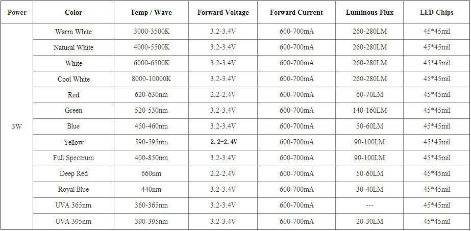 3 Вт натуральный белый, теплый белый, холодный белый: 45 мил