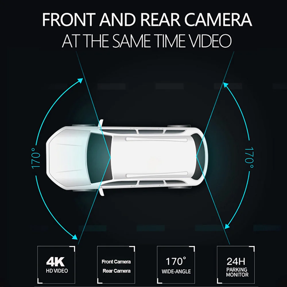 На базе мощного процессора Novatek 96675CPU/96672CPU объектив одновременно захватывает спереди и внутри со скоростью 1440P / 2160P / 1944P