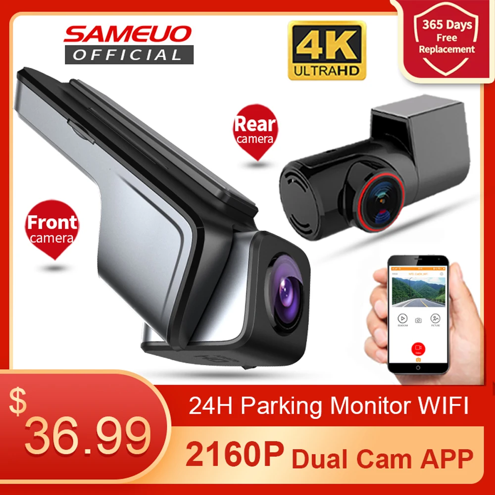 Видеорегистратор Sameuo U1000Pro, 4K, заднего вида, Wi-Fi, Автомобильный видеорегистратор для автомобильной камеры UHD 2160P, видеорегистратор заднего вида, парковочный монитор 24 часа
