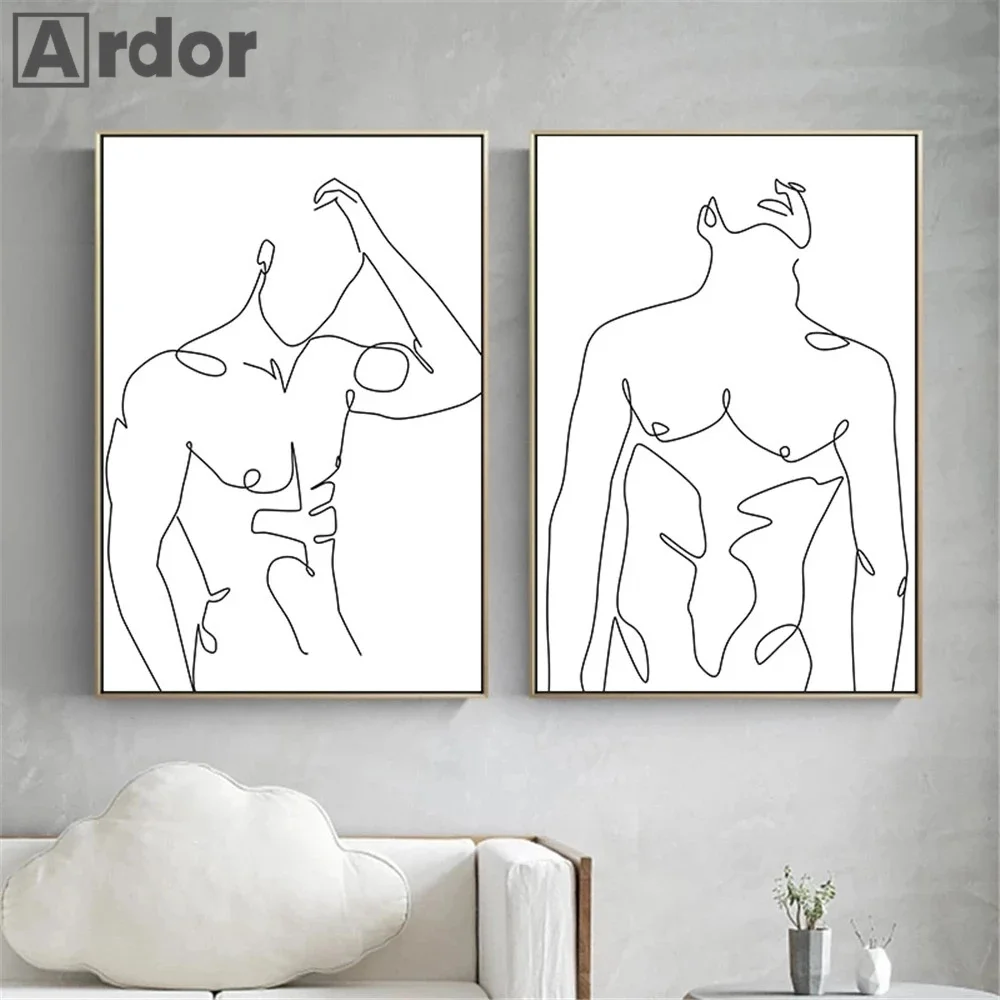 Мужской фигуры холст картины человек плакат ню с проведенными линиями тела Абстрактная живопись Wall Art Печать минималистский картина Украшения в спальню