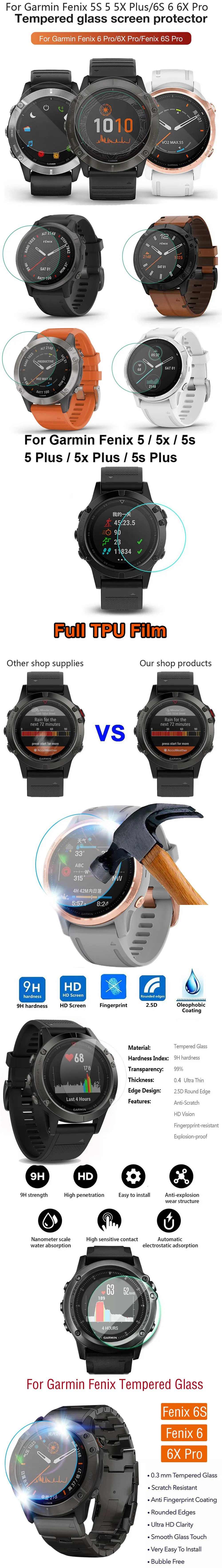 Защитная пленка из закаленного стекла для часов Garmin Fenix 6, 6S, 6X Pro, 5, 5S, защита от царапин