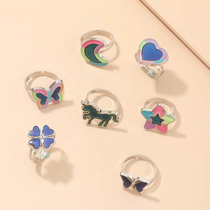 Новая мода клевер Единорог бабочка настроение кольца для женщин с изображением Луны и звезд, сердце изменения Цвет Температура чувства эмоции кольцо подарок для детей