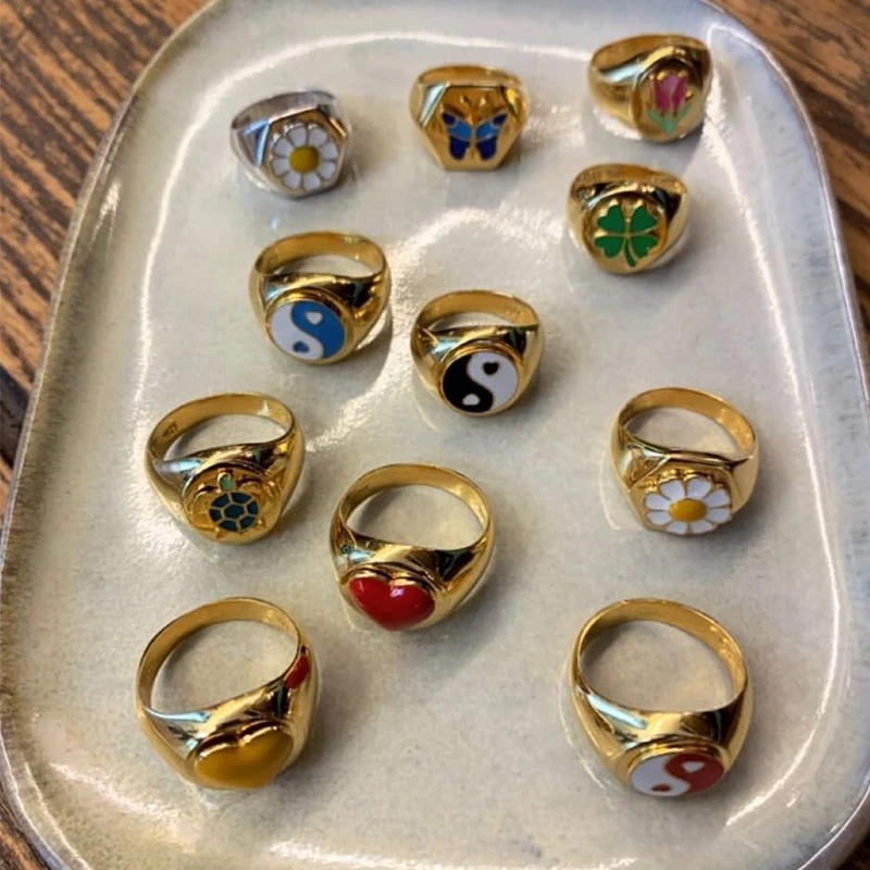 Женское кольцо Инь Ян 90-х в эстетике конфетных цветов, модное винт...