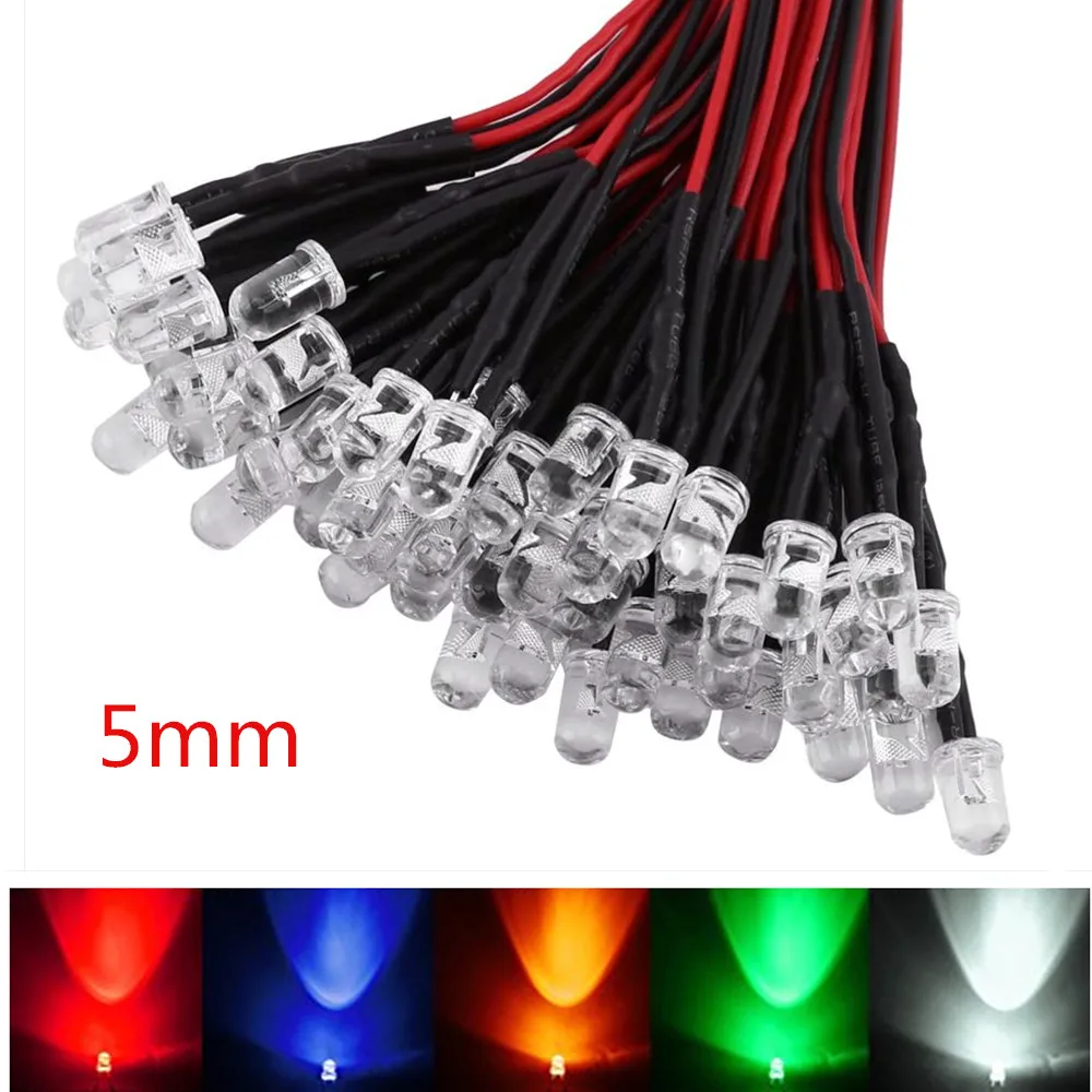 20-100 шт 3 мм/5 мм красный/зеленый/синий/RGB белый уф DC12V круглый предварительно проводной светодиодный прозрачный с пластиковым держателем