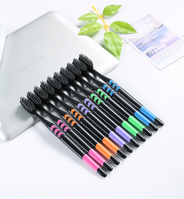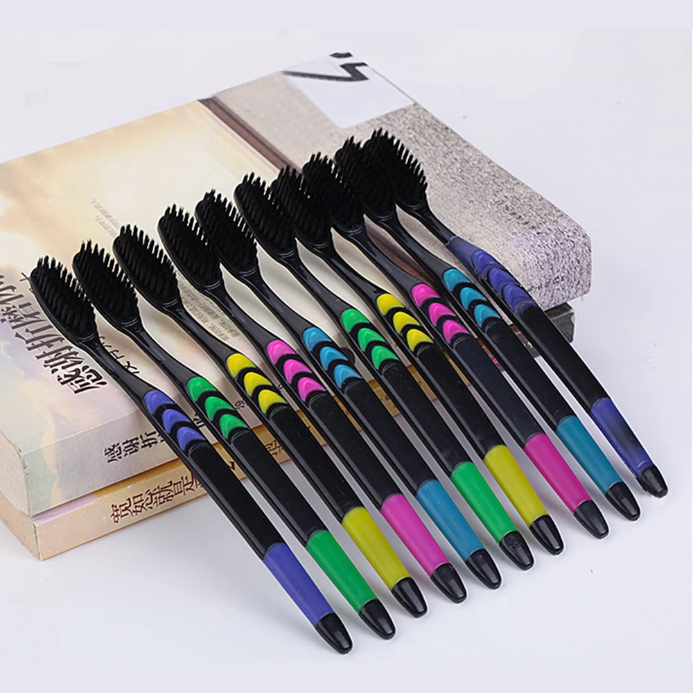 10 шт для взрослых с бамбуковым древесным углем для зубной щетки, семейный Костюм Мягкая волосяная щетка с напылением из бамбукового угля Экологичная зубная щётка для чистки зубов Уход