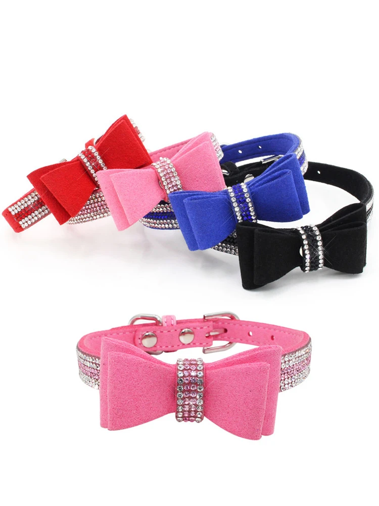 Ошейник для собак, стразы, бант, прочный, регулируемый, аксессуары для домашних животных, собак, удобный, персонализированный, для маленьких, средних, больших питомцев