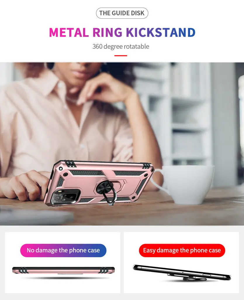 Противоударный чехол для Xiaomi Redmi Note 10 Pro, чехол для note 9T, 9 Pro, 5G, Гибридный Силиконовый чехол для Redmi K40, 9, 9A, 8, металлическое кольцо