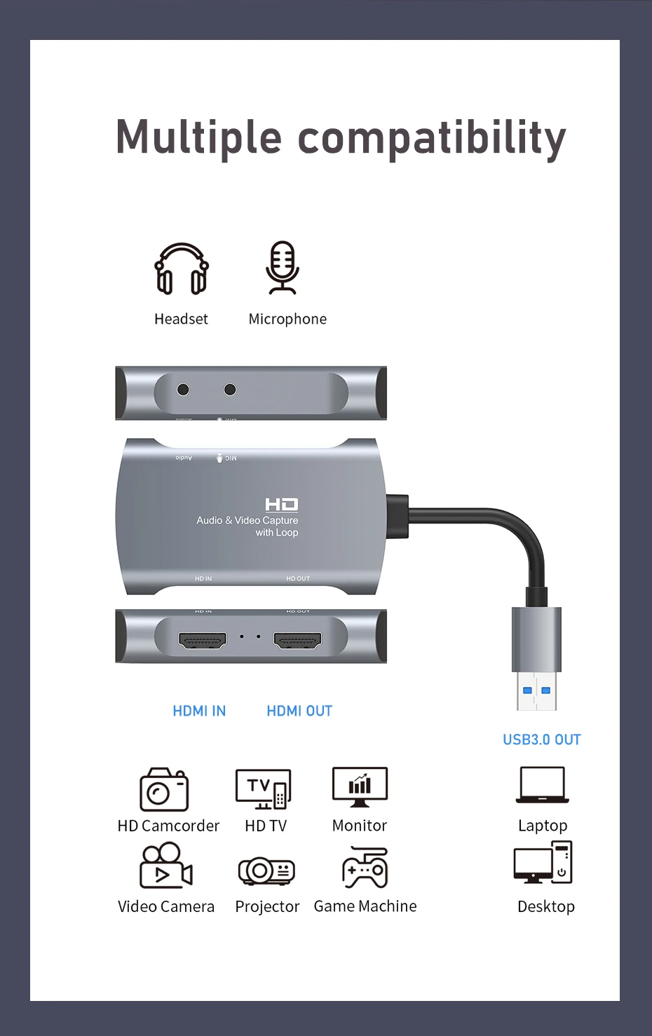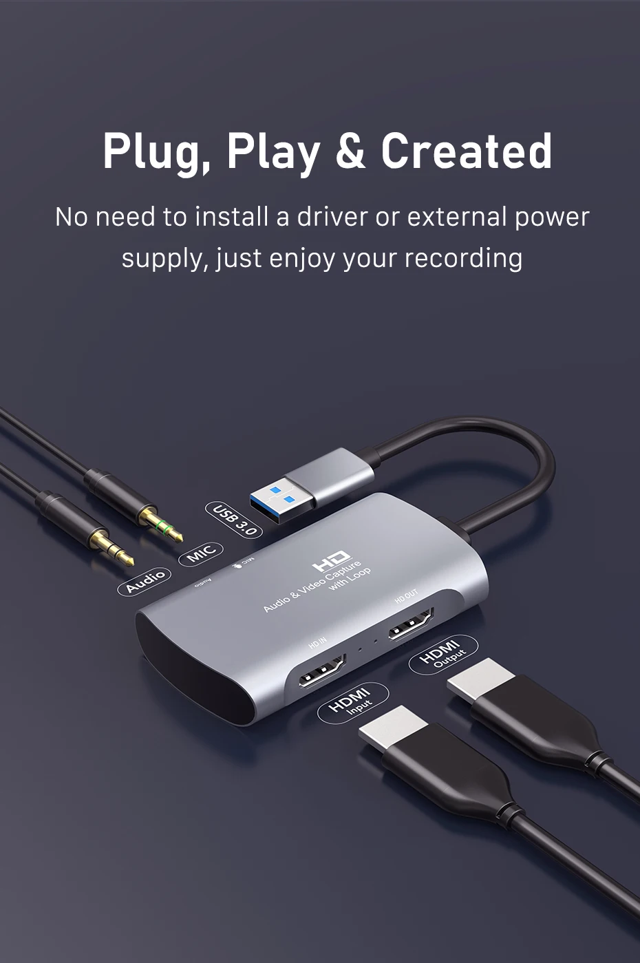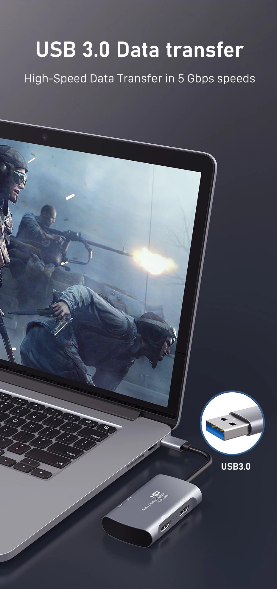 Карта видеозахвата CABLETIME USB 3,0, 4K HDMI, контур видео на USB 1080P, для переключения камеры, записи в реальном времени, HDMI захват C386