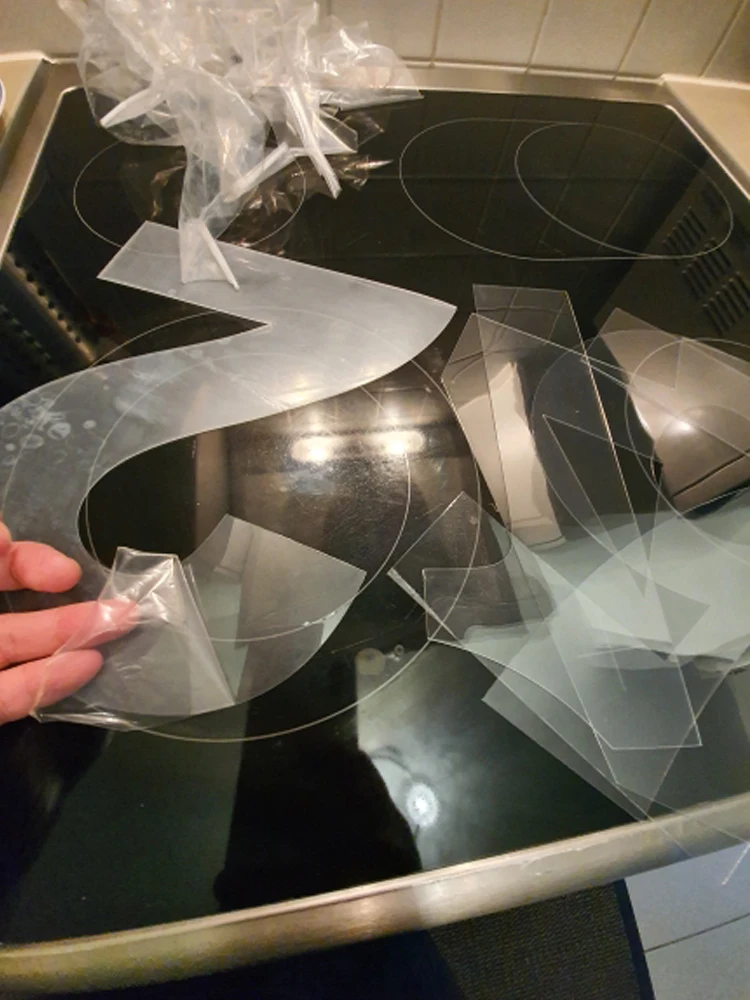 Продукт представляет собой двухстороннюю ламинированную пленку. Вам нужно оторвать двухстороннюю ламинированную пленку при использовании. Выглядит немного белым. После того, как пленка удалена, она на самом деле прозрачный листовой ПЭТ. Существует целый набор из 9 шт. цифры от 0 до 8 лет, а толщина одного листа составляет 0,3 мм.