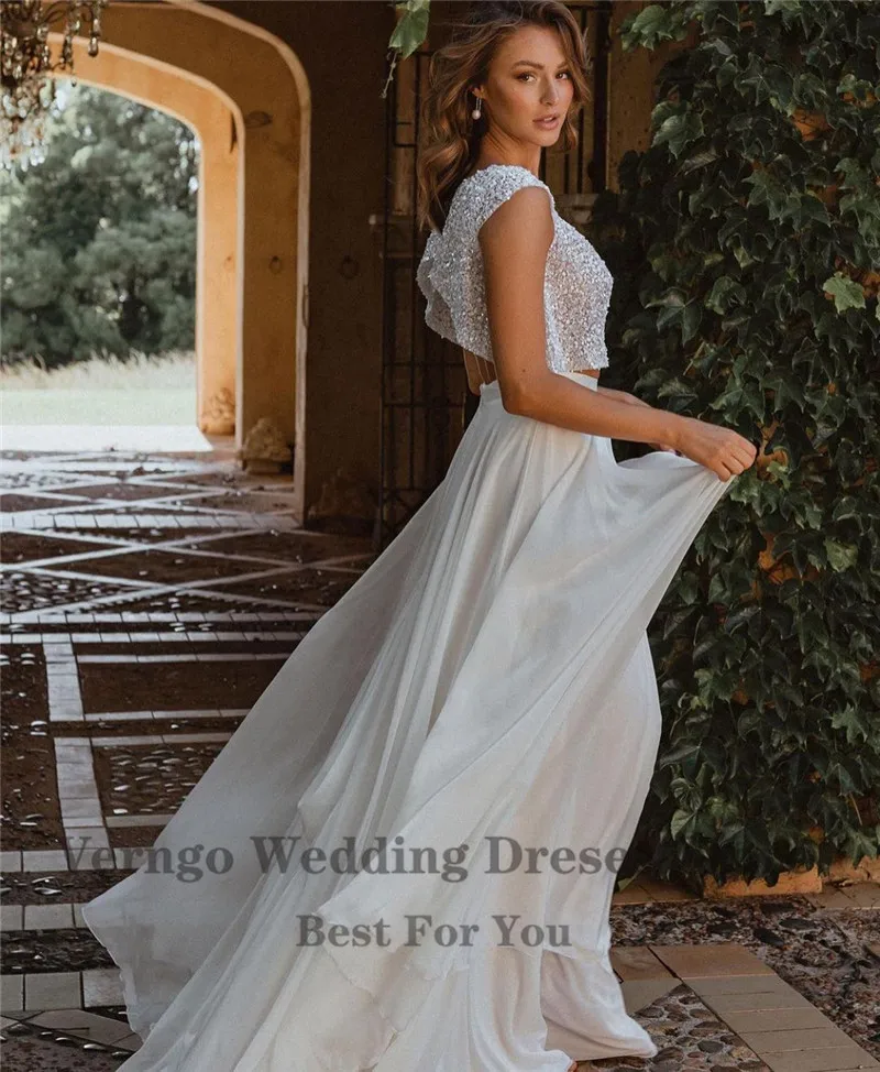 Шифоновое пляжное платье-трапеция из двух частей, с коротким рукавом и круглым вырезом