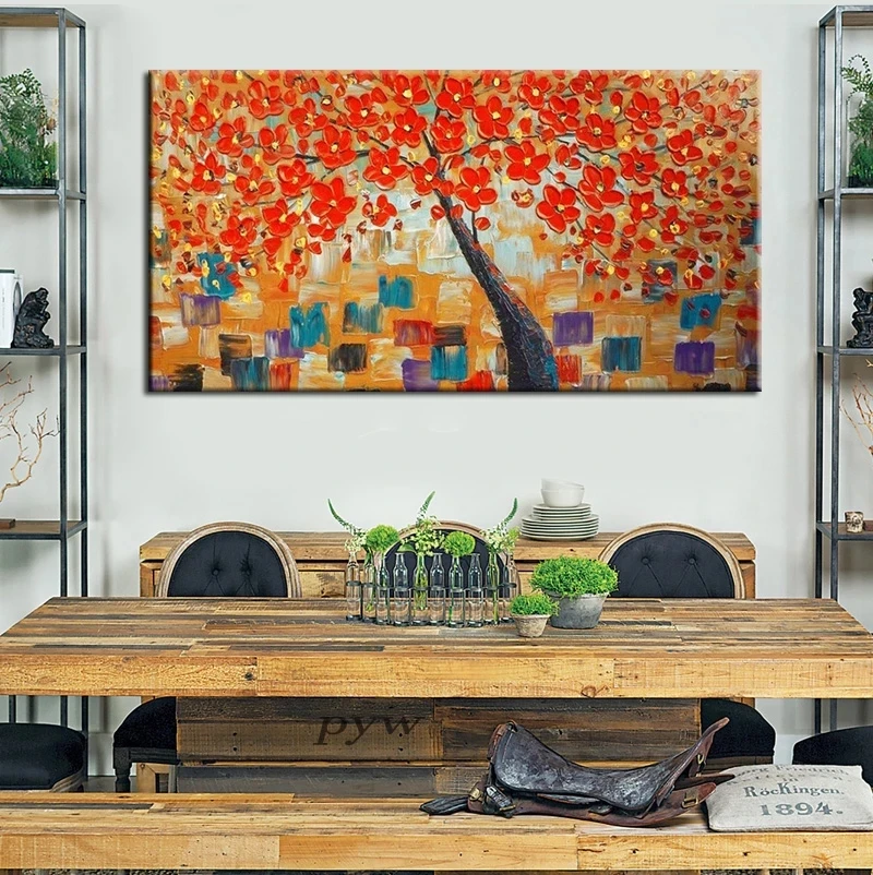 Современная Абстрактная Большая Золотая картина ручной росписи с изображением денежных деревьев, цветов, 3d картина маслом на холсте, домашний декор, Настенная картина для гостиной
