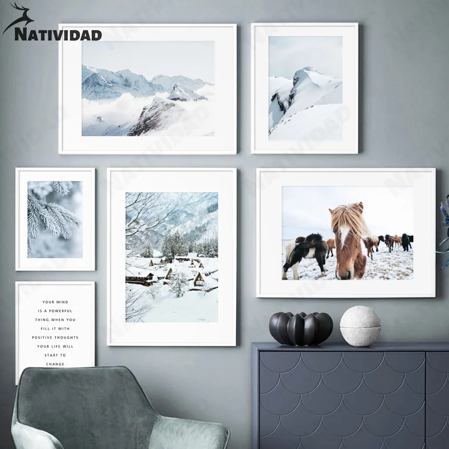 Картина на холсте Зимний снег художественный плакат украшение современный скандинавский пейзаж четыре сезона картина для гостиной Кабинета домашний декор