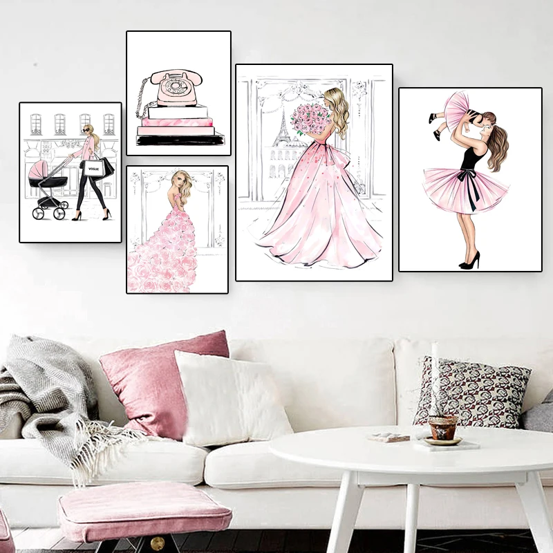 Настенная картина с розовым телефоном, цветочным рисунком для леди, ребенка, настенное искусство, настенные картины, постер для дома, гостиной, домашний декор