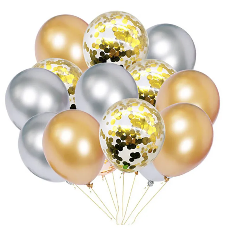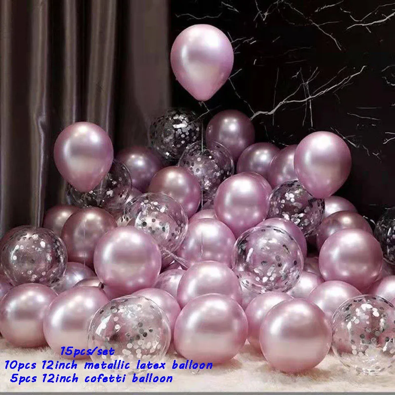 15 шт.компл. хромированный металл Цвет шар микс конфетти Пижама-комбинезон для детей с День рождения Воздушные Globos брак Новый год гелием мяч постав