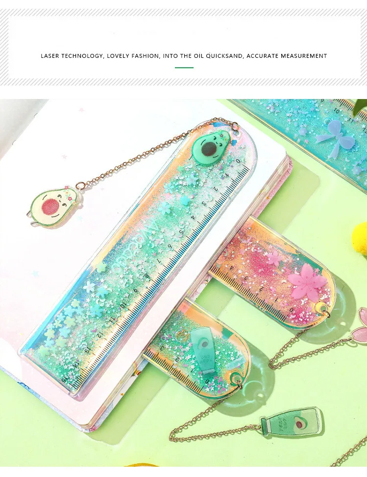 Kawaii авокадо кошка закладки Многофункциональный 15 см Подвеска с линейкой блеск метки книги для детей подарок школьные канцелярские принадлежности