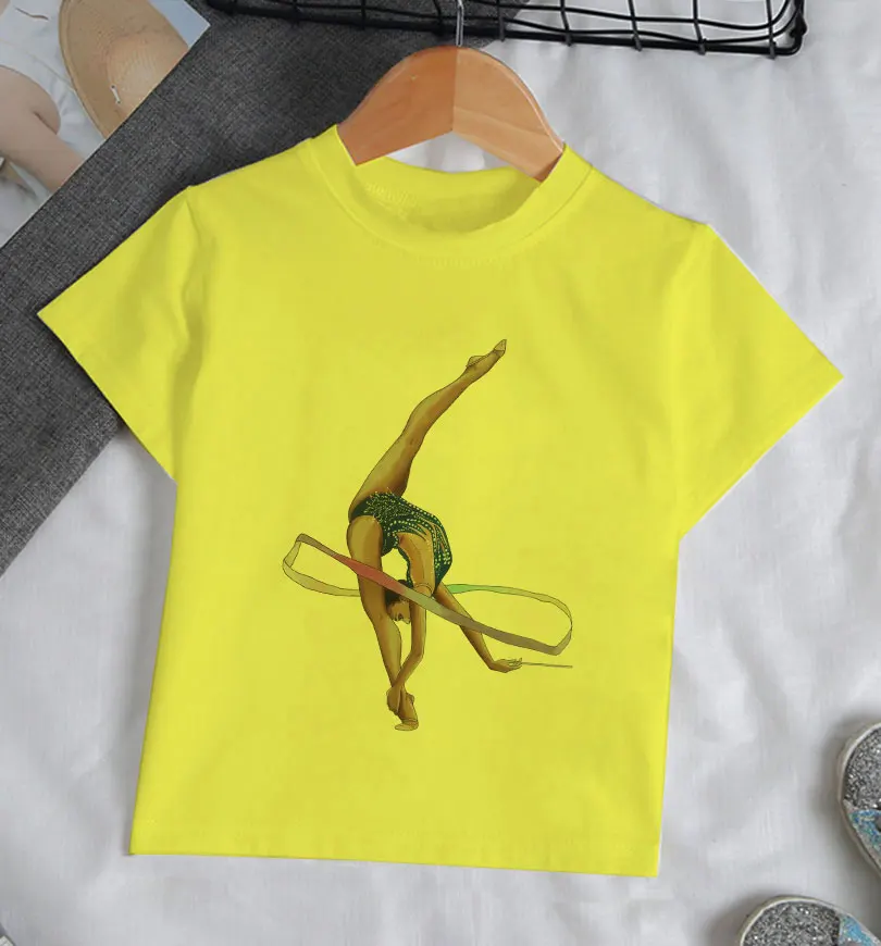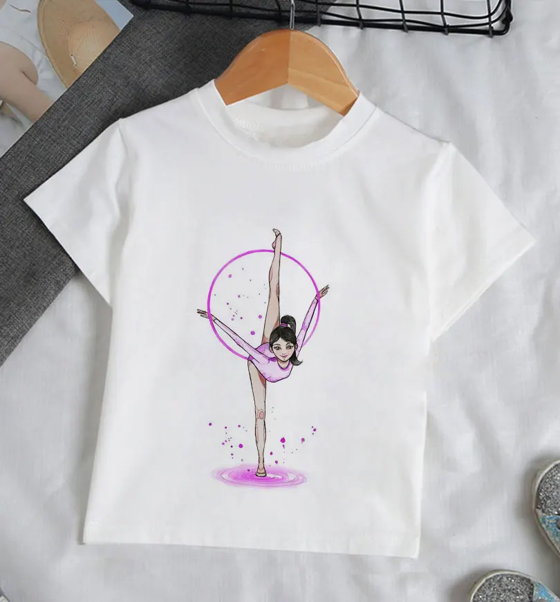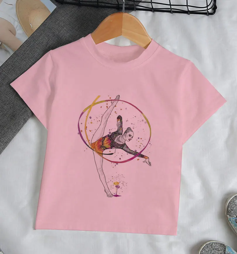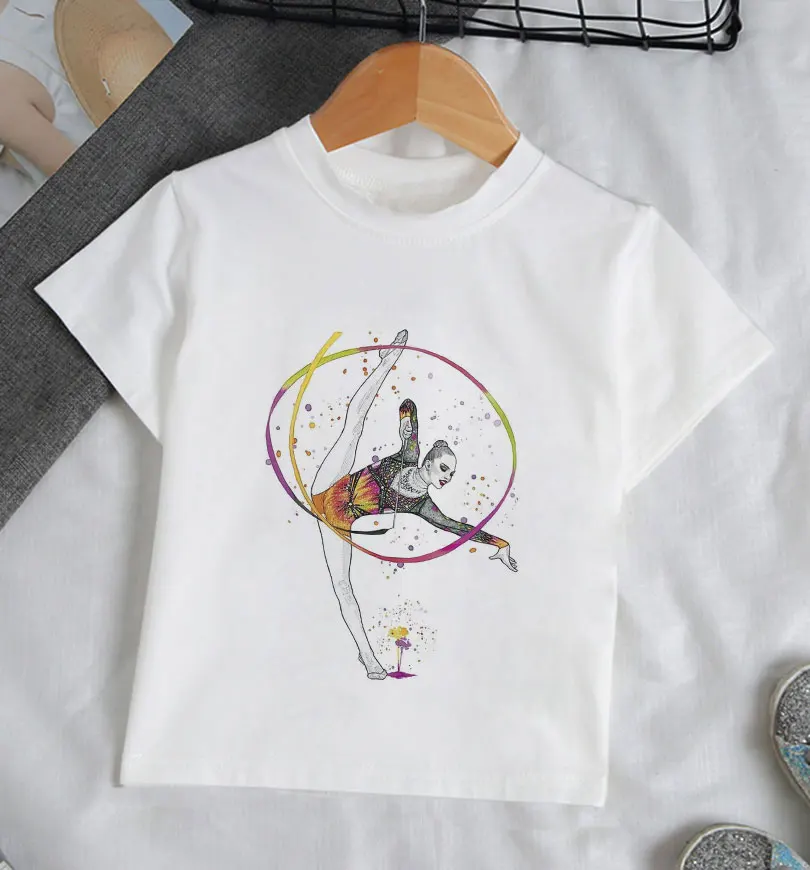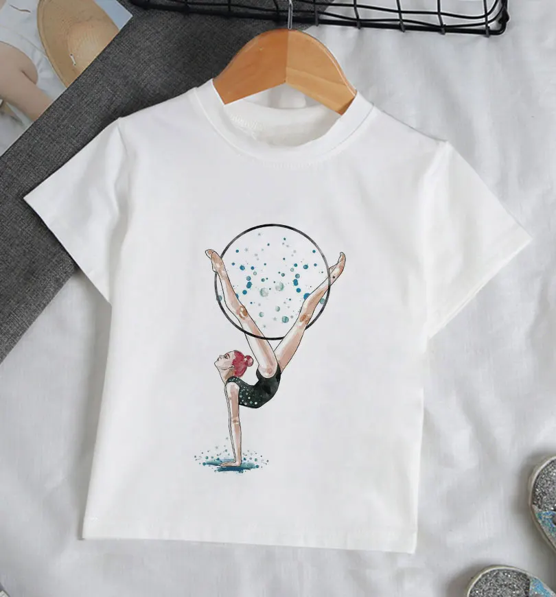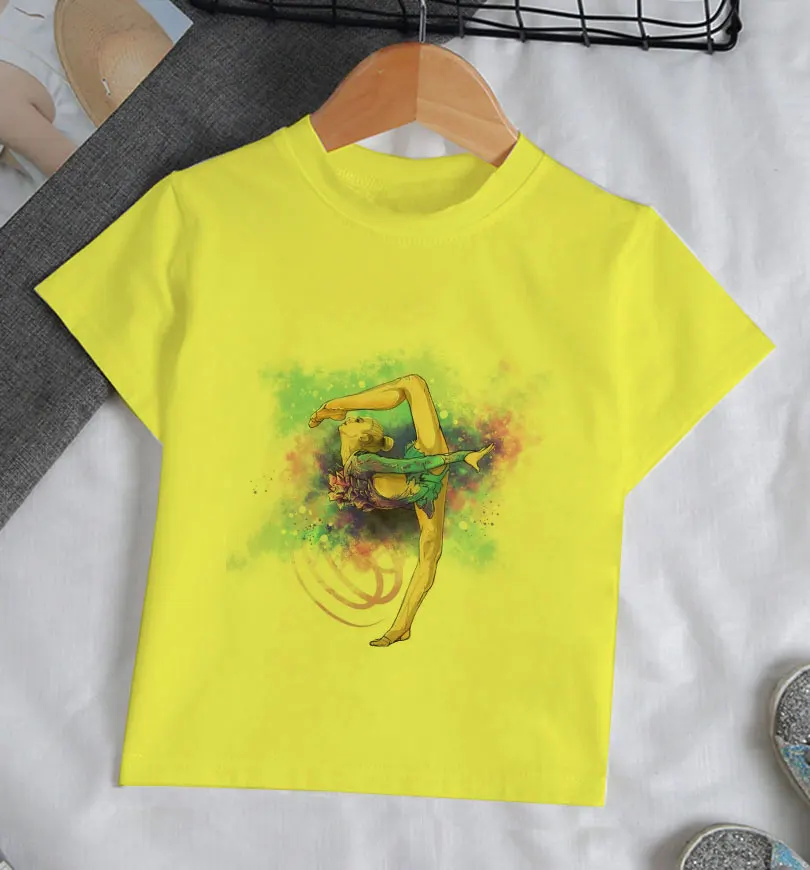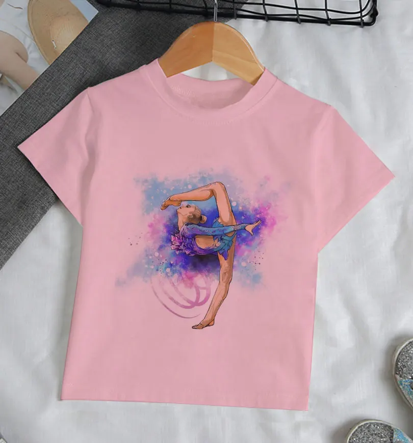 Летняя интересная Акварельная балетная детская футболка для гимнастики Спортивная повседневная одежда с коротким рукавом и круглым вырезом для малышей Топ