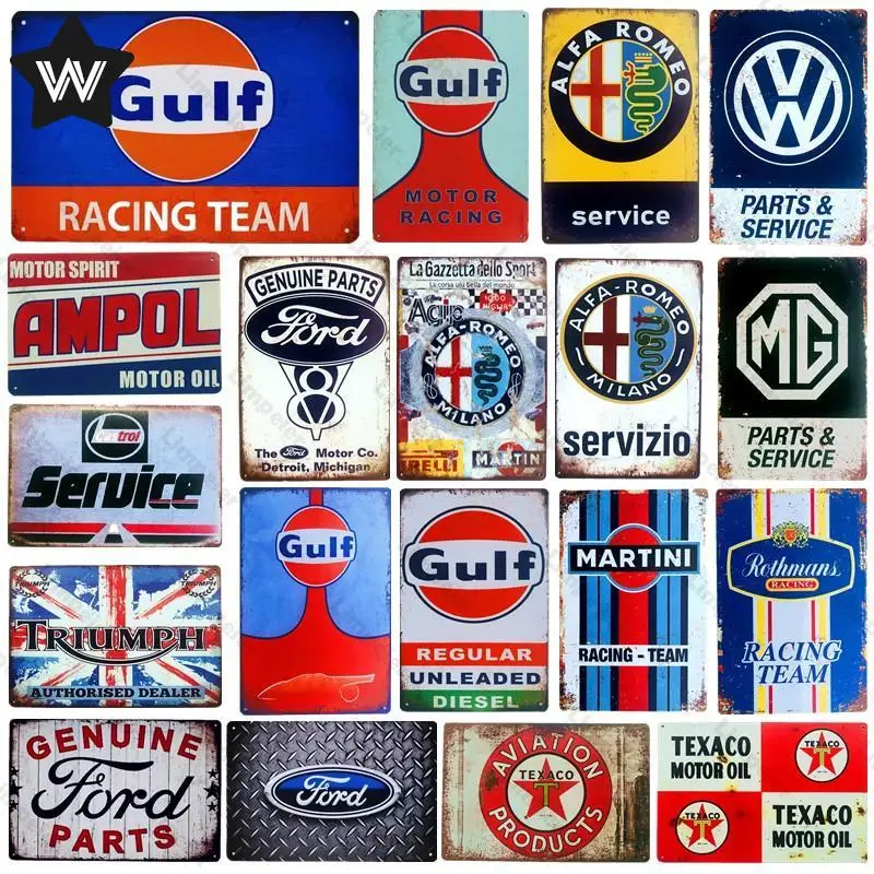 Металлическая пластина с газовым маслом, жестяной знак Alfa Romeo, винтажная металлическая Настенная Наклейка в стиле ретро, пластина с мотором залива для гаража, металлический декор