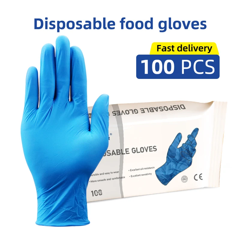 Перчатки нитриловые одноразовые, пищевые, водонепроницаемые, без аллергии, 100 шт.