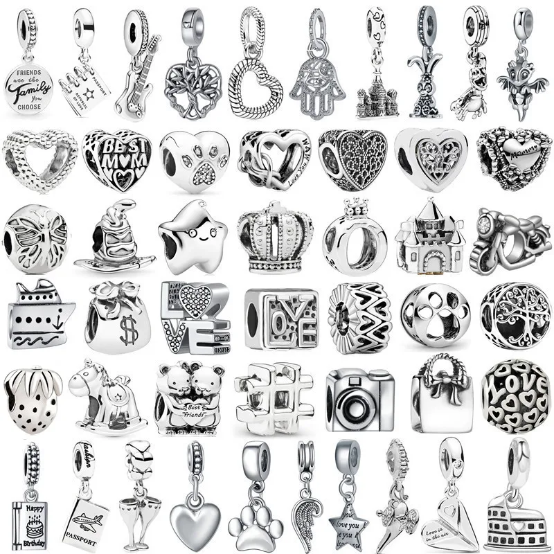 Лидер продаж, подходящий для оригинального браслета Pandora, серебряные ювелирные изделия, аксессуары, корабль, сердце, ангел, леди, DIY подвесные бусины, подарки
