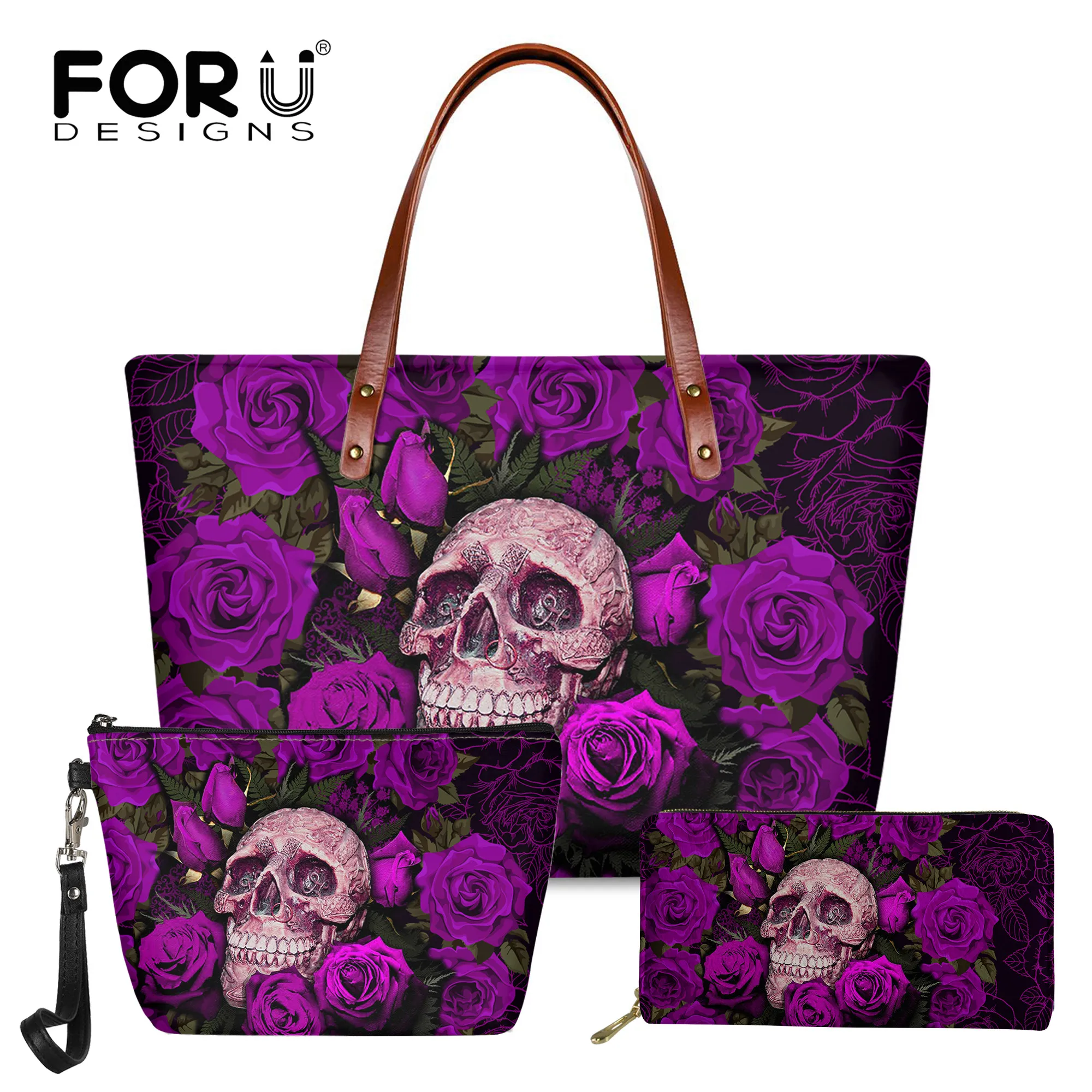 Индивидуальная женская сумка с принтом черепа и розы FORUDESIGNS, роскошная модная сумка через плечо и кошелек, женская сумка