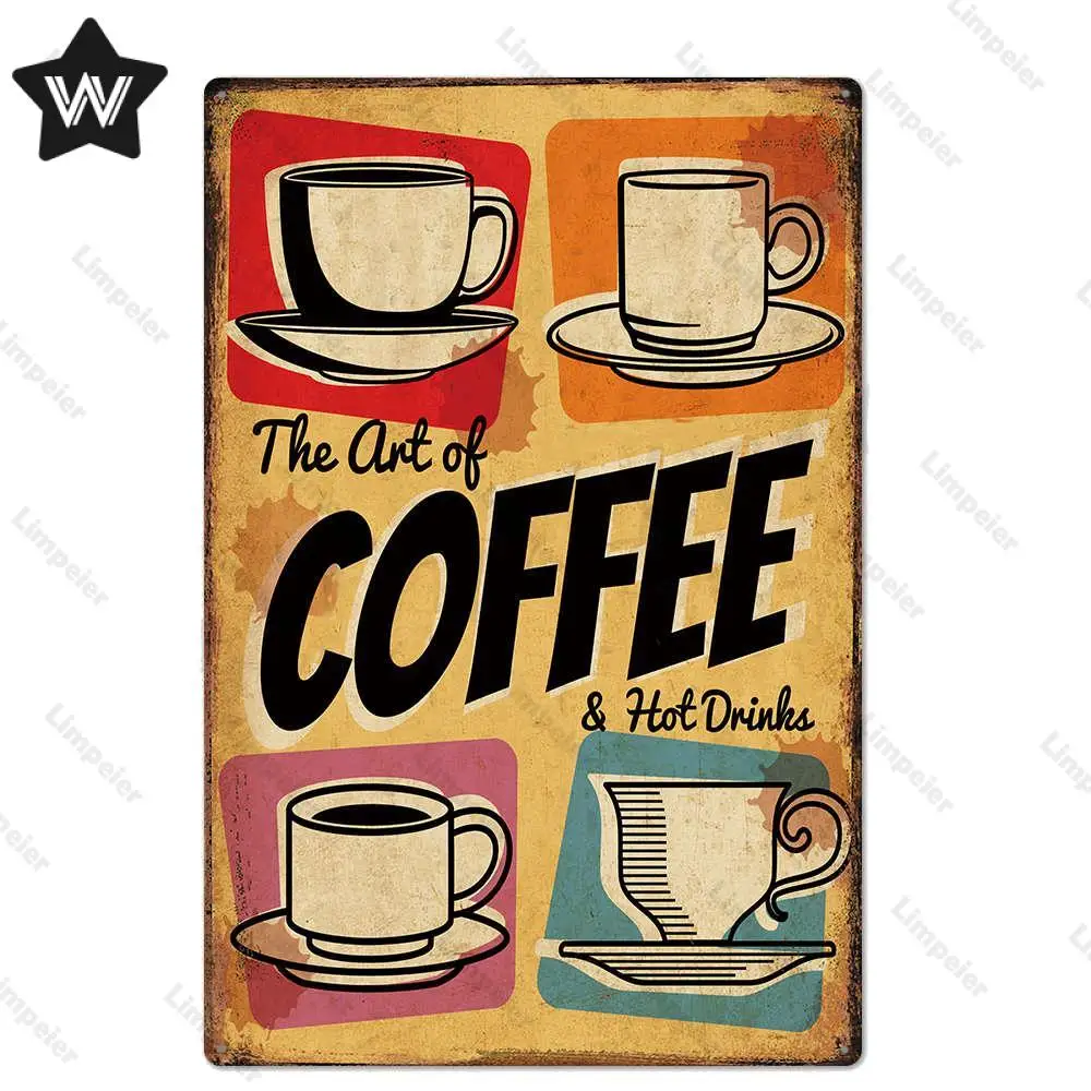 Забавный текст кофе, металлический жестяной знак, винтажный декор, ...