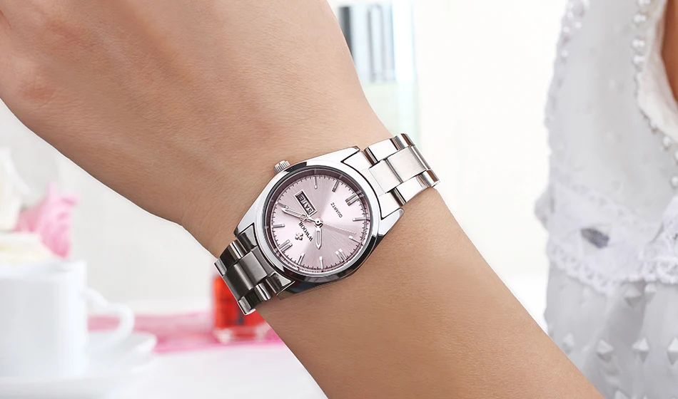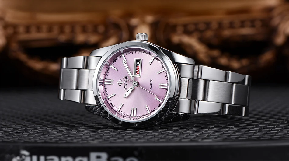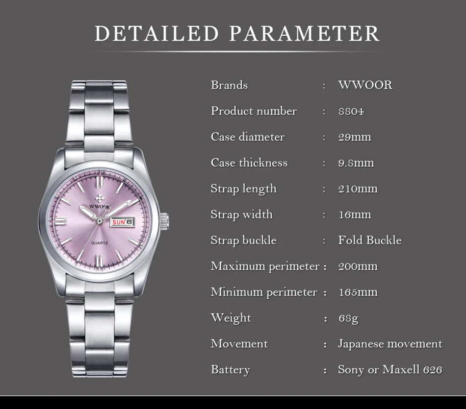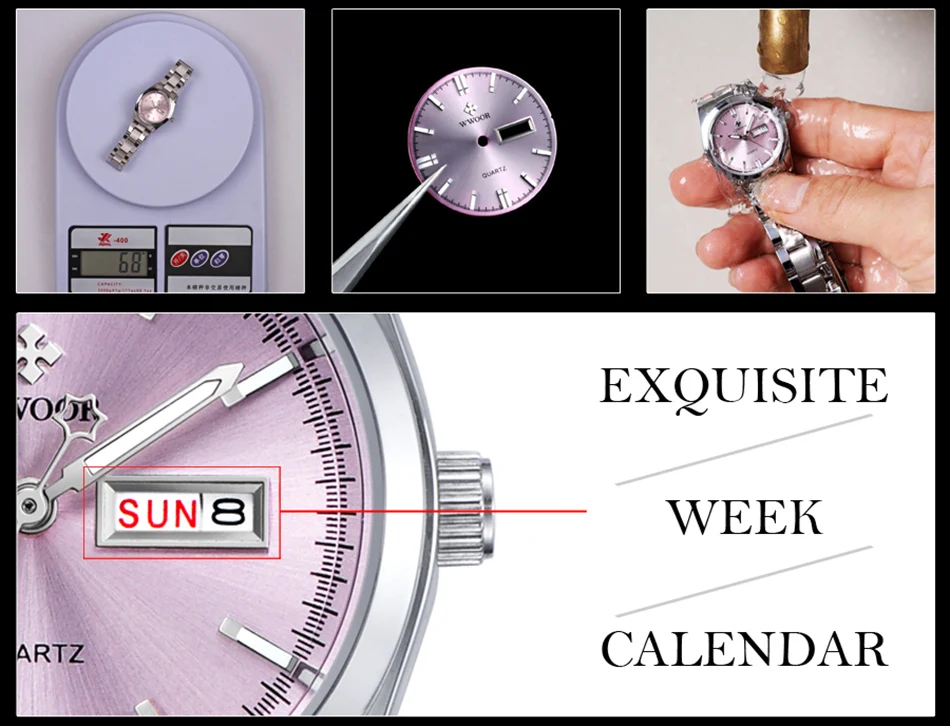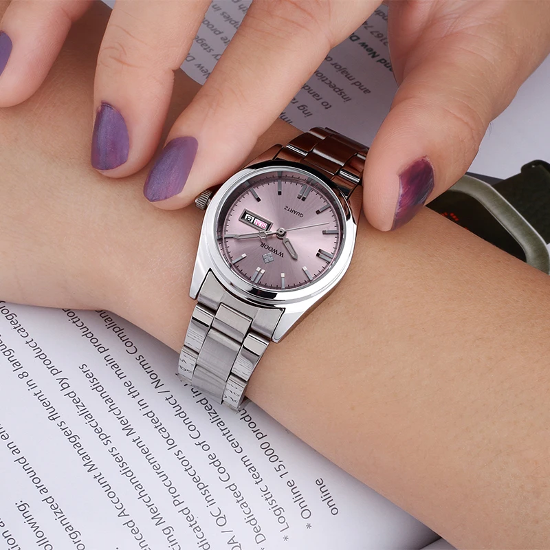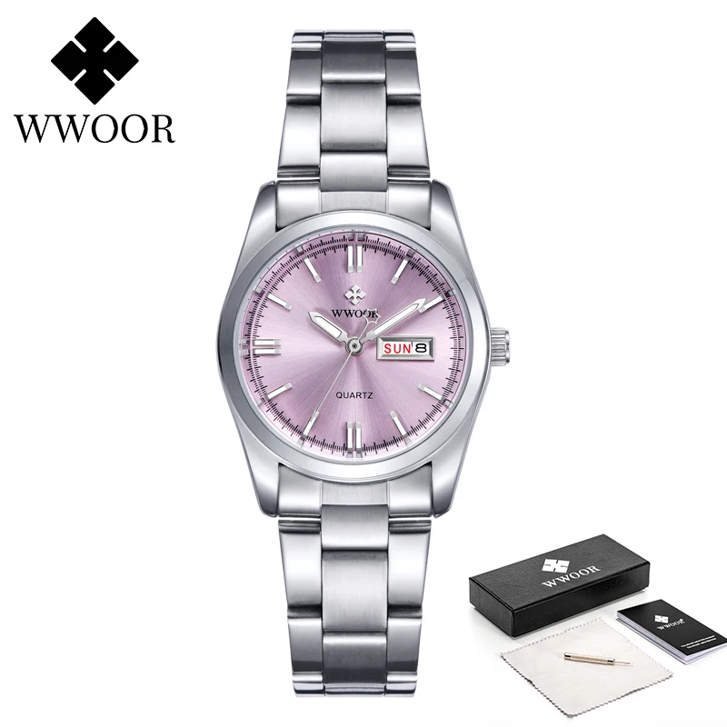 Часы женские WWOOR, с браслетом, простые, кварцевые, с календарем, розовые, в подарочной коробке