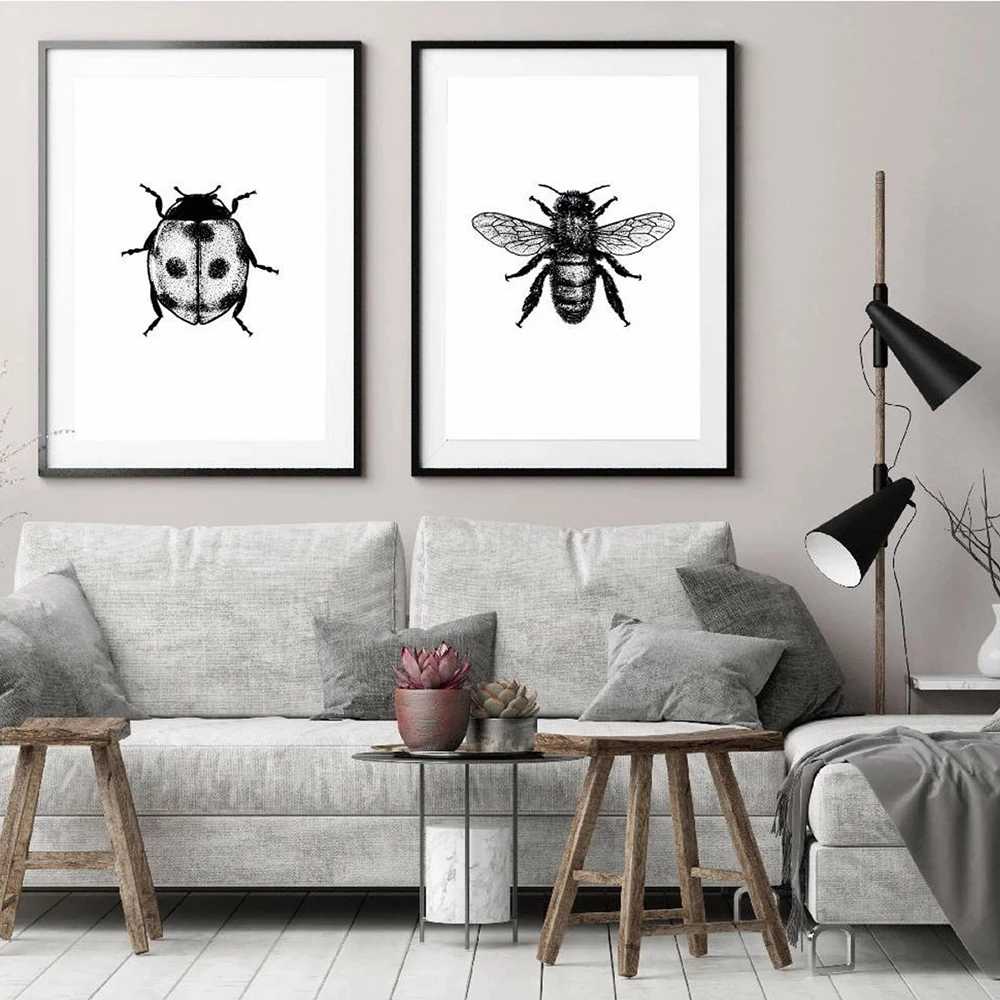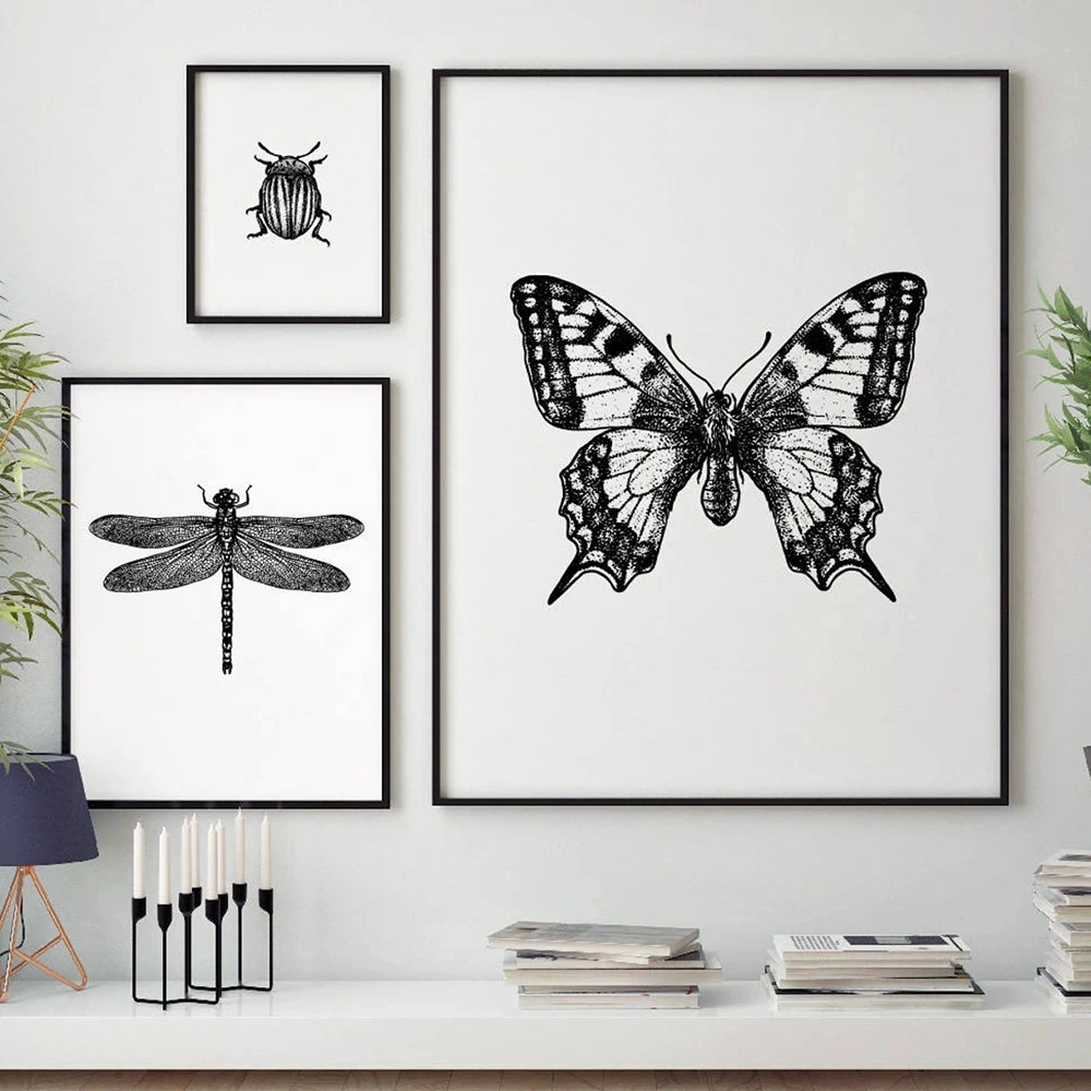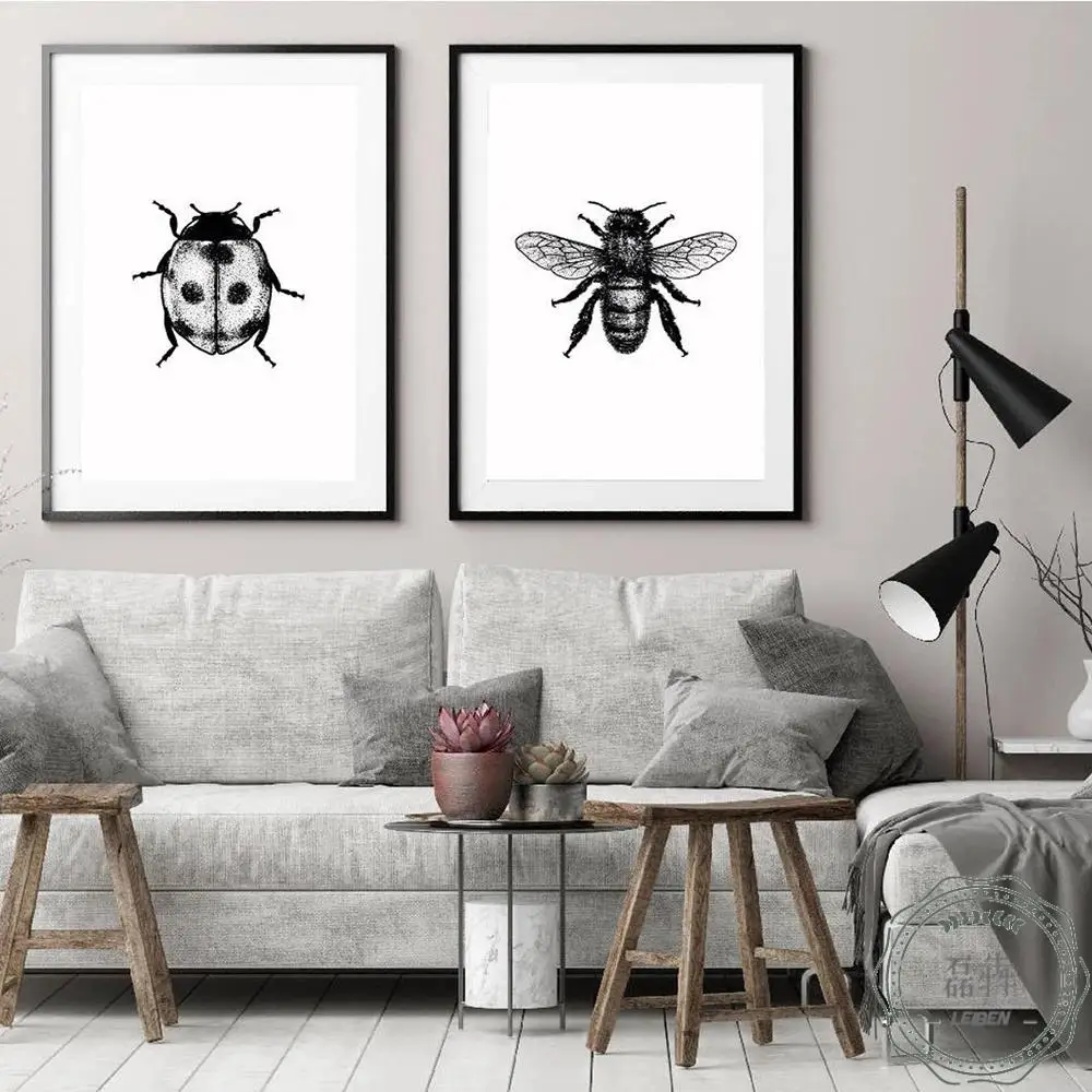 Иллюстрация насекомых, настенная Картина на холсте, Бабочка, пчела, стрекоза, божья коровка, жук, плакаты и принты, настенные картины, домашний декор